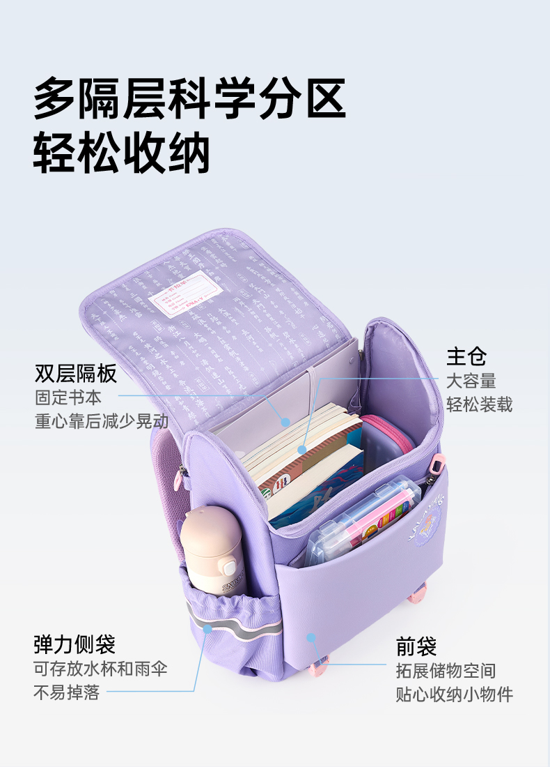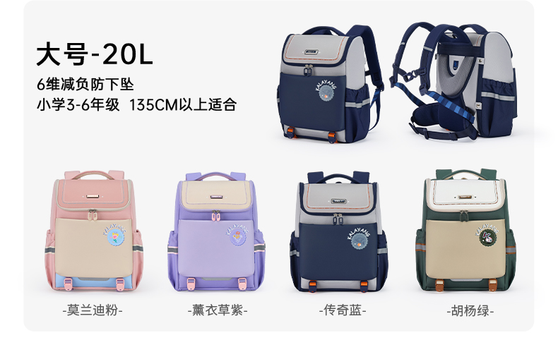 【6维减负大嘴书包3.0】卡拉羊18/20L小学生1-6年级减负防下坠书包双肩背包梦想家 CX2256+2781