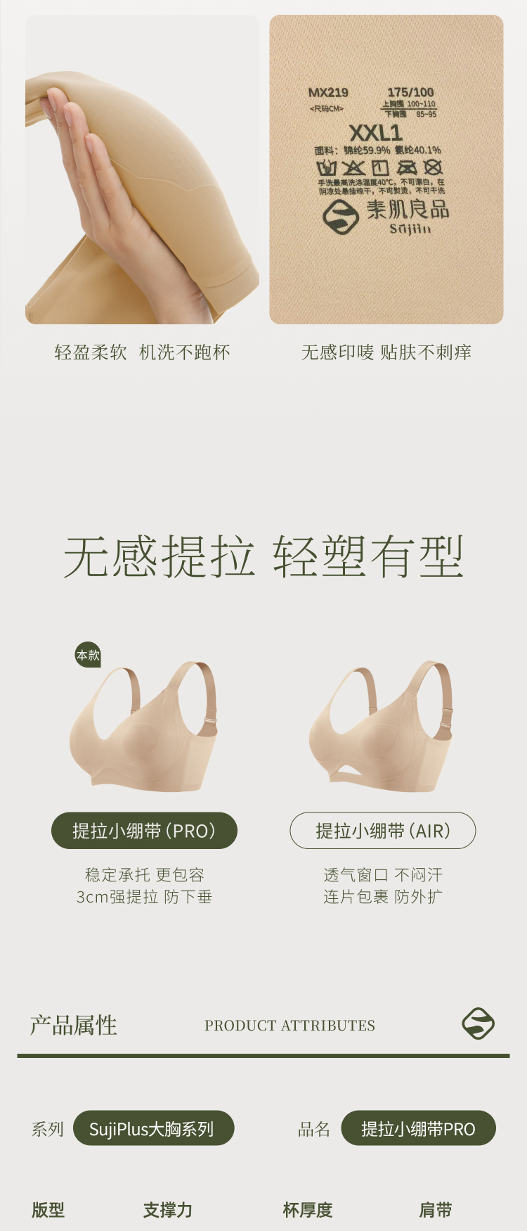 【E】素肌良品大胸显小胸-薄款防下垂收副乳-透气提拉无痕内衣MX219