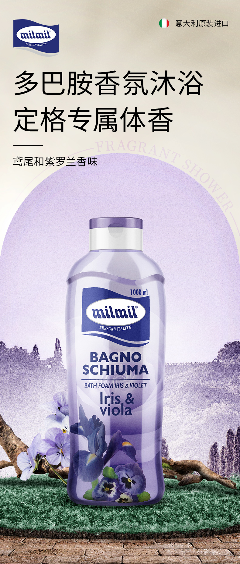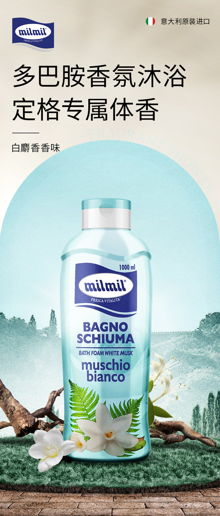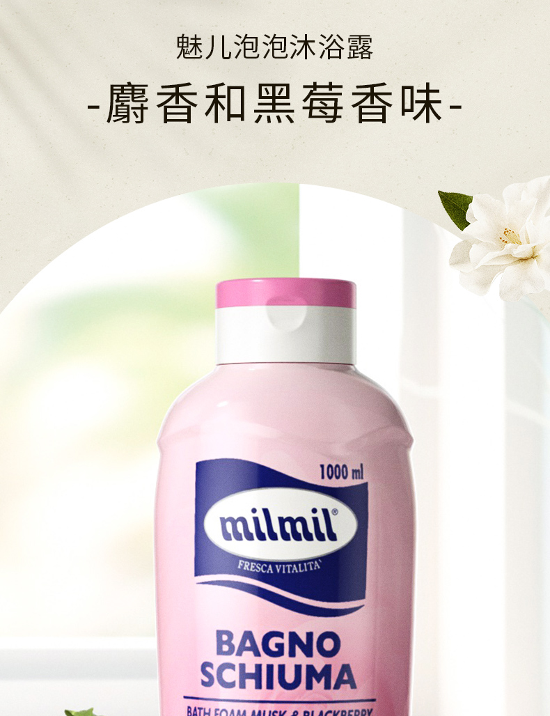 【品名】意大利原装进口 Milmil-魅儿 香氛泡泡沐浴露 1000ml/瓶 大容量 5款可选 【规格】兰花和阿月浑子香味1000m1 ;白麝香香味1000ml ;阿甘果和黑檀木香味1000ml ;鸢尾和紫罗兰香味1000ml ;麝香和黑莓香味1000ml 【产地】意大利 【保质期】5年 【发货包装】独立包装瓶 【发货地】广东惠州 【发货快递】中通 【不发货区域】港澳台 【补邮费地区】新疆,西藏,内蒙古,宁夏,青海,甘肃+10元/单 【发货时效】48-72小时,周末节假日顺延 |
