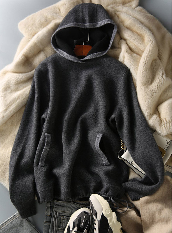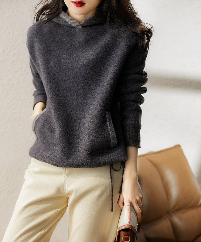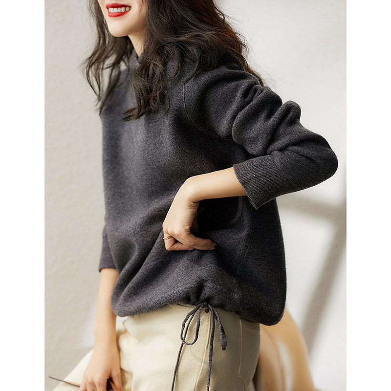 JZ-W26S24218 秋冬穿搭毛衣女设计感小众新款2023时尚减龄气质打底连帽上衣