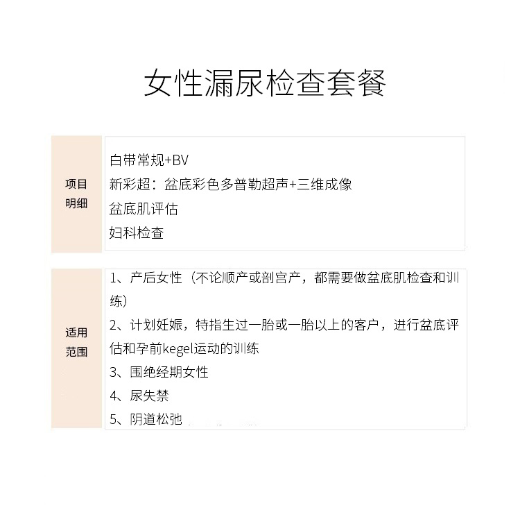 女性漏尿检查套餐(仅限初诊)