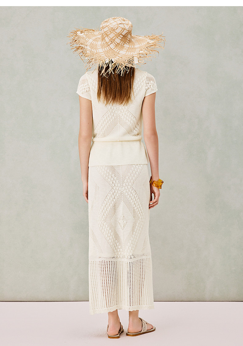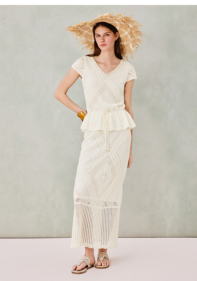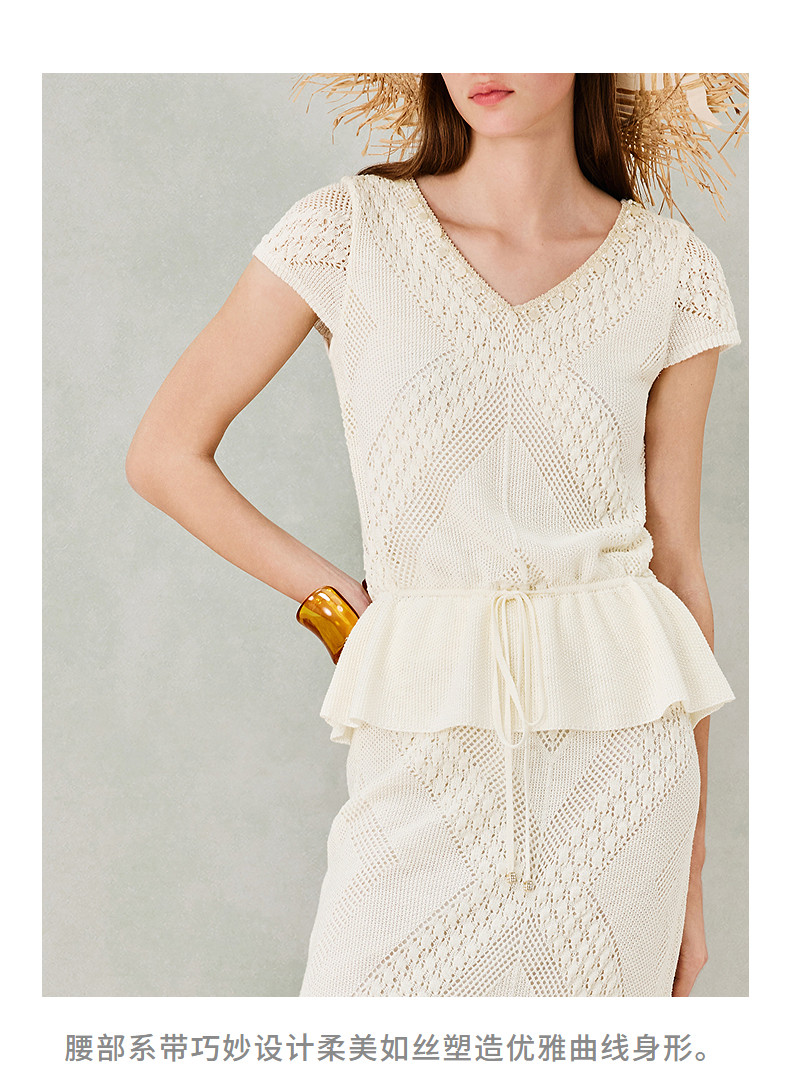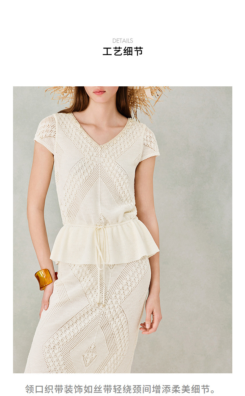 MAXRIENY波嬉风针织上衣半裙两件套2026年春季新款短袖时尚套装(货号:MS80SW020SK023)