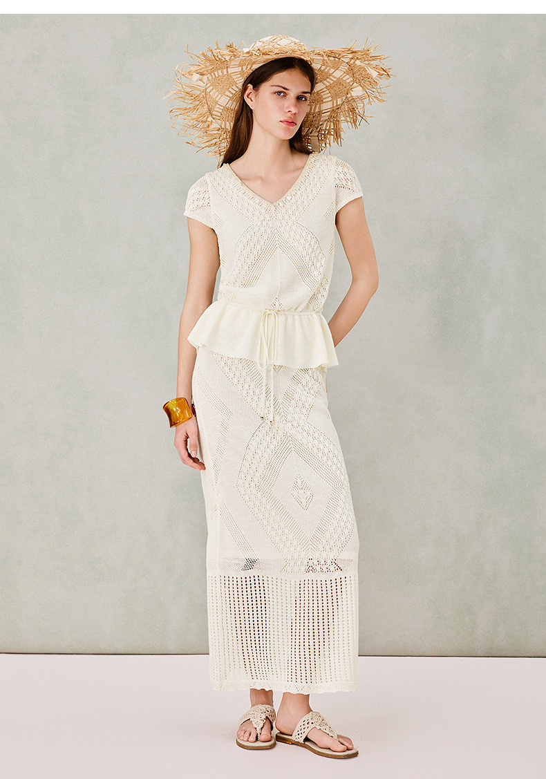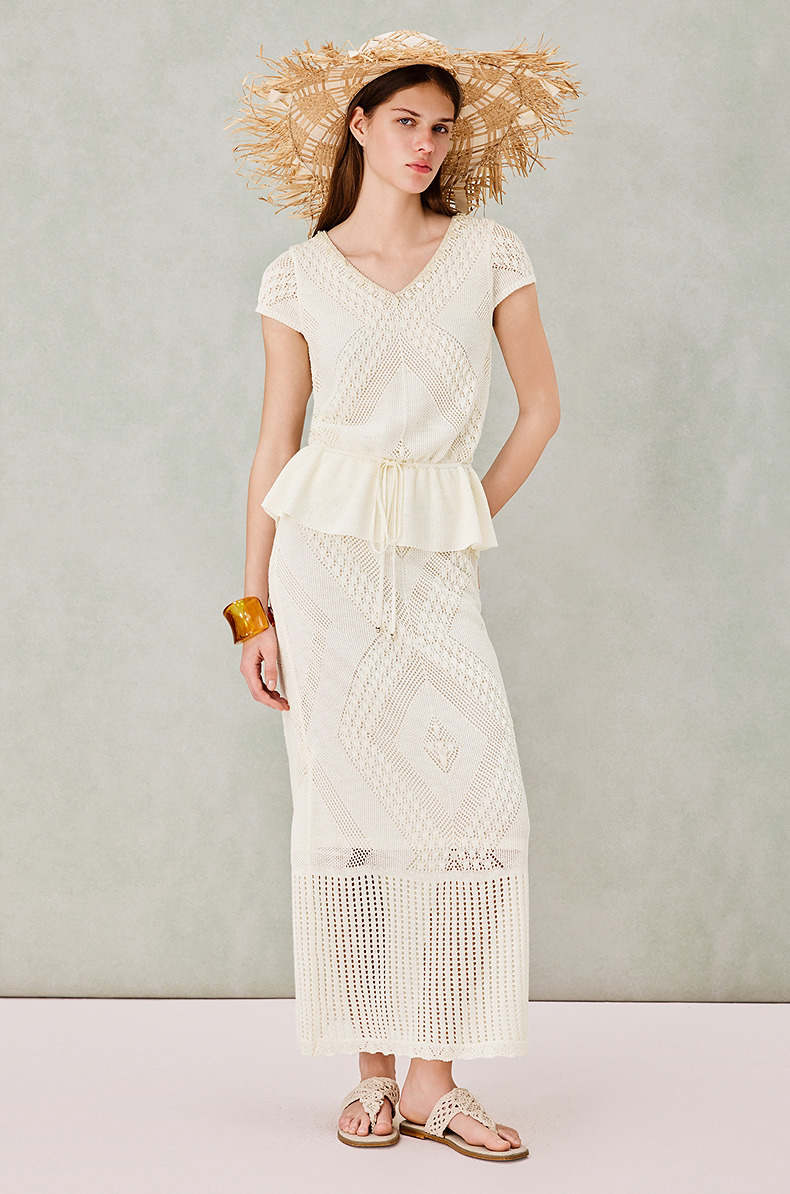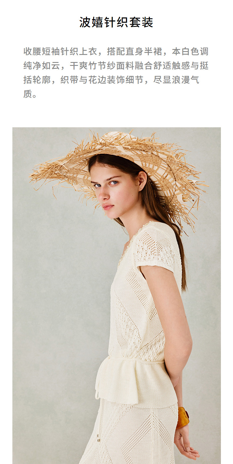 MAXRIENY波嬉风针织上衣半裙两件套2026年春季新款短袖时尚套装(货号:MS80SW020SK023)
