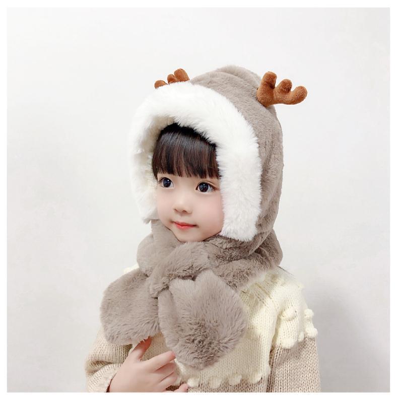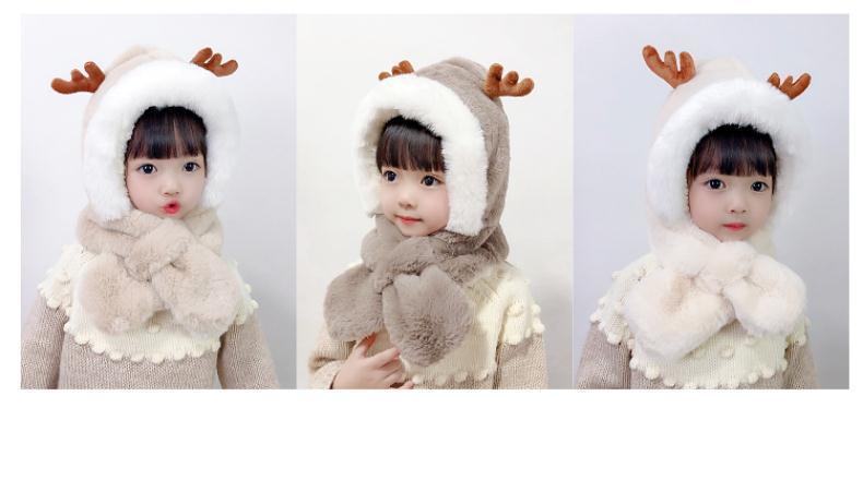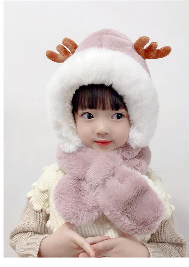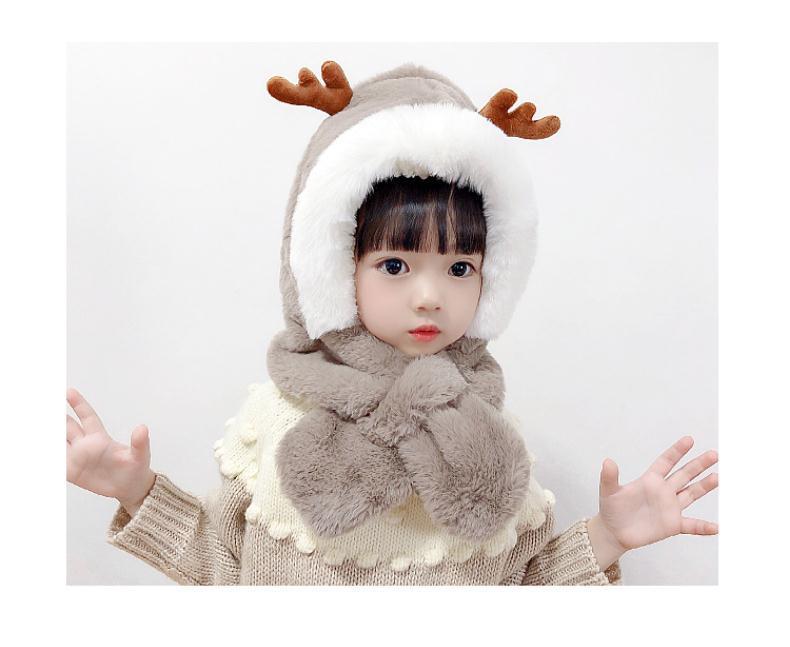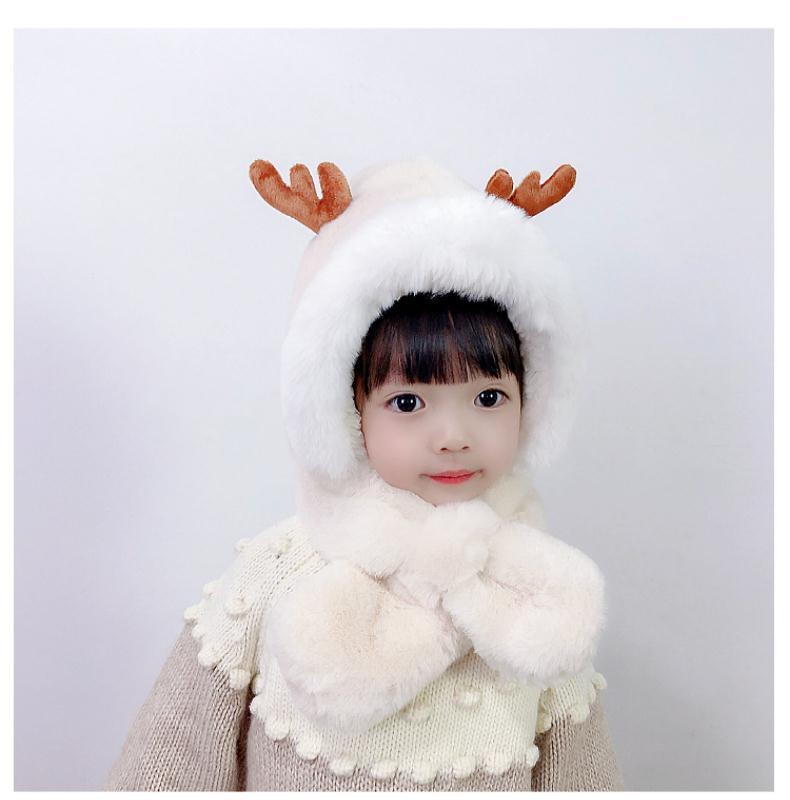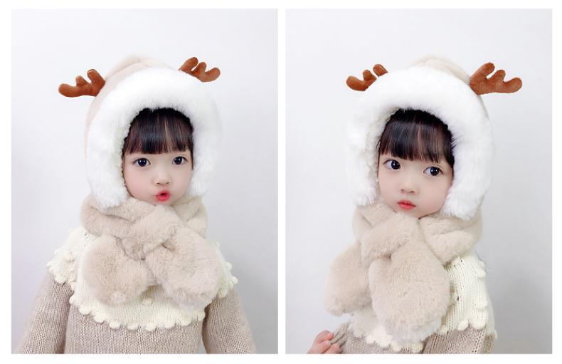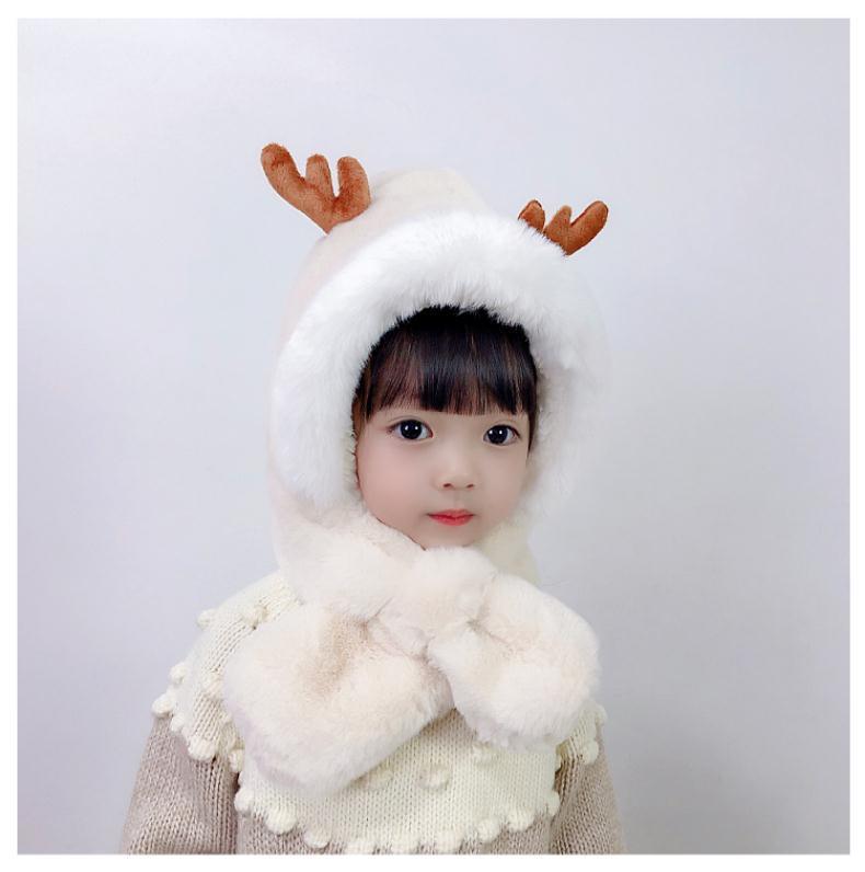 【SSEMMY KIDS】冬天儿童帽子围巾一体 可爱毛绒圣诞婴儿帽 宝宝护耳男女童圣诞帽