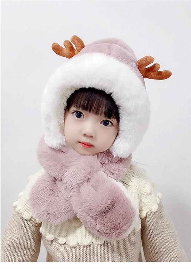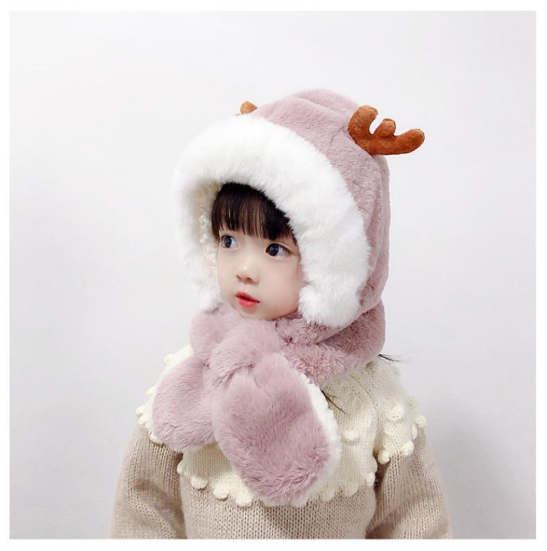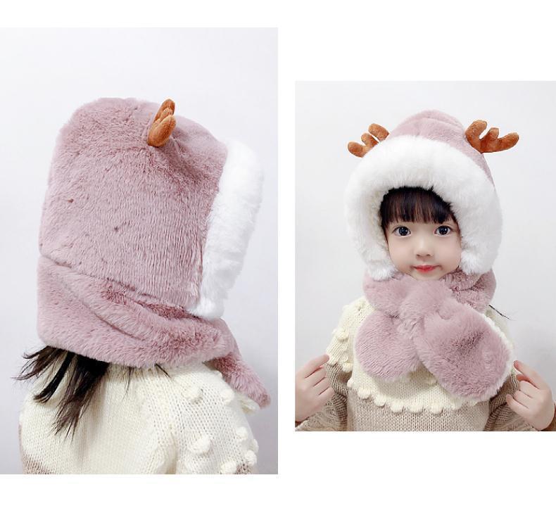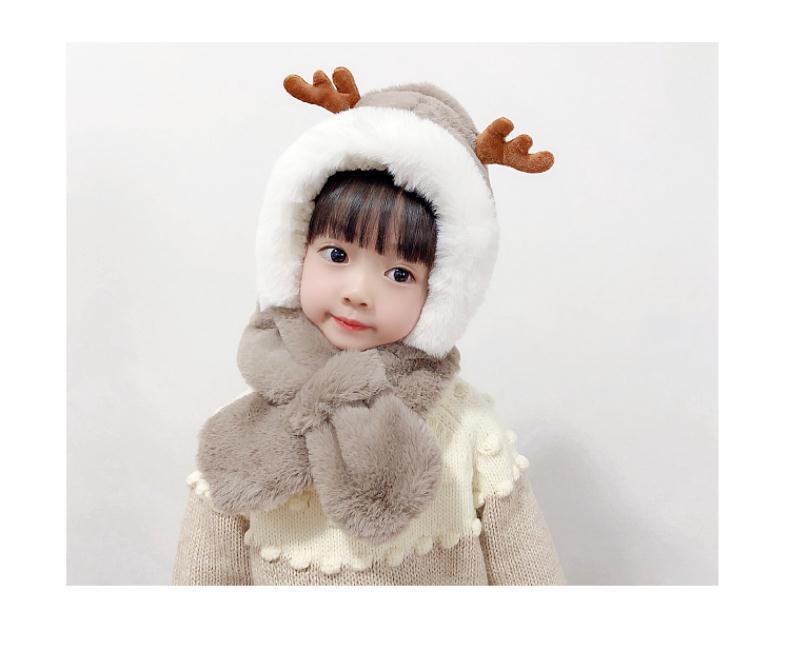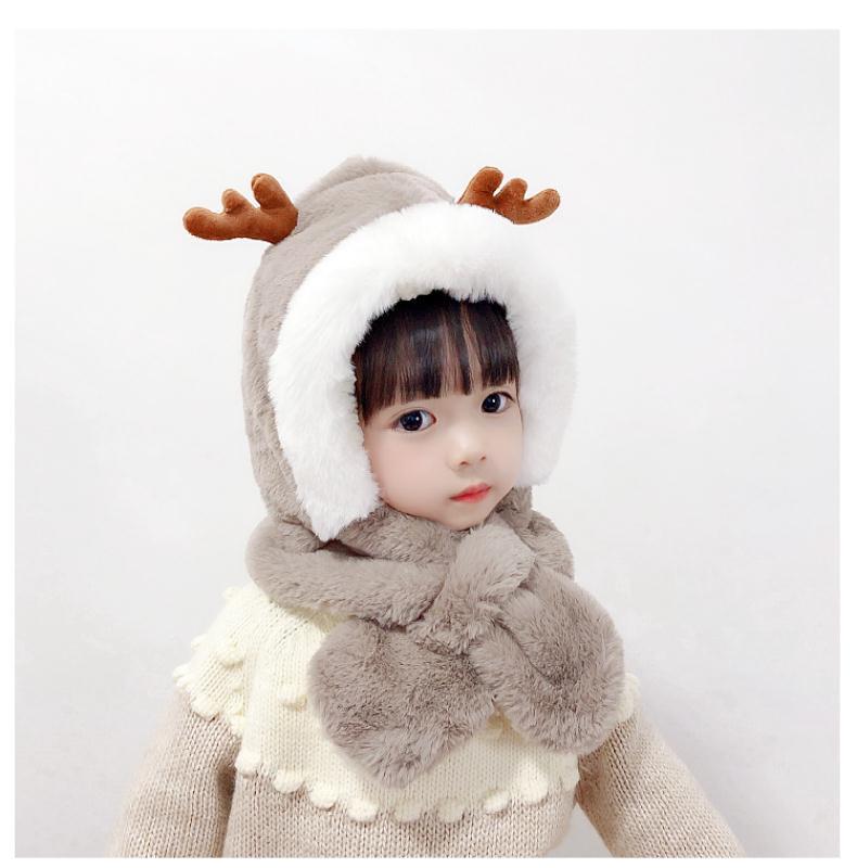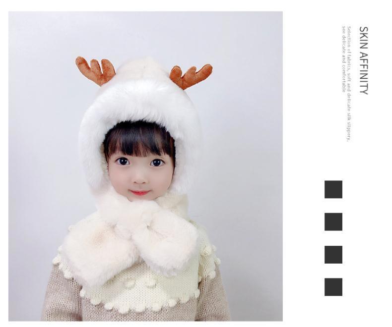 【SSEMMY KIDS】冬天儿童帽子围巾一体 可爱毛绒圣诞婴儿帽 宝宝护耳男女童圣诞帽