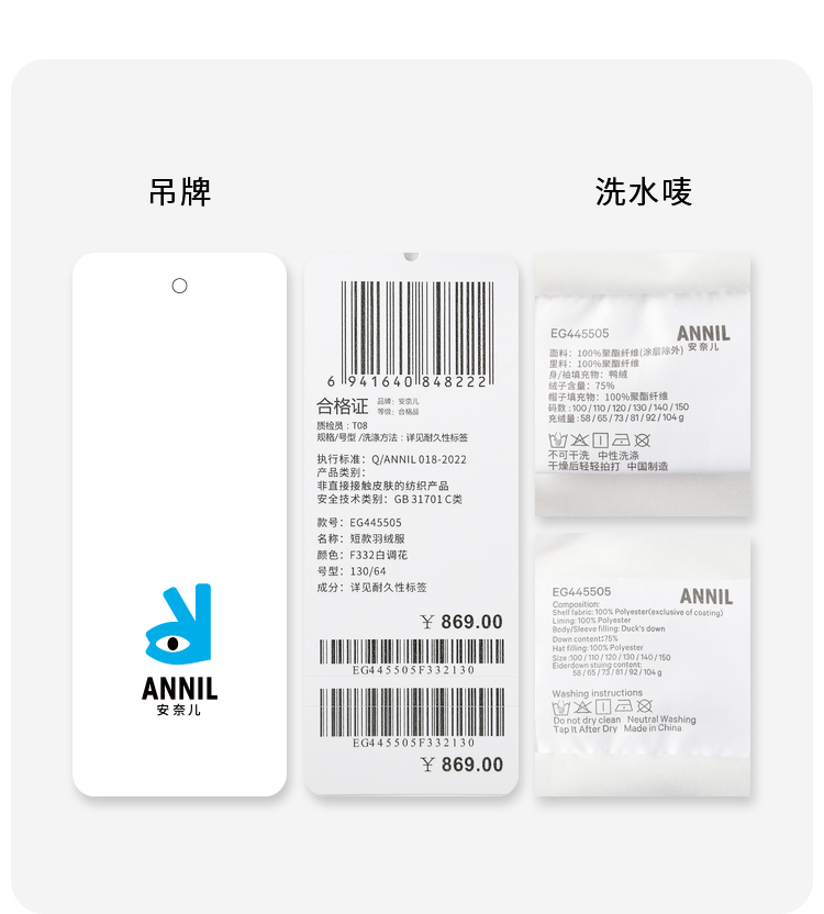 【轻暖0~10℃】女童短款羽绒服冬季新款安奈儿童装EG445505