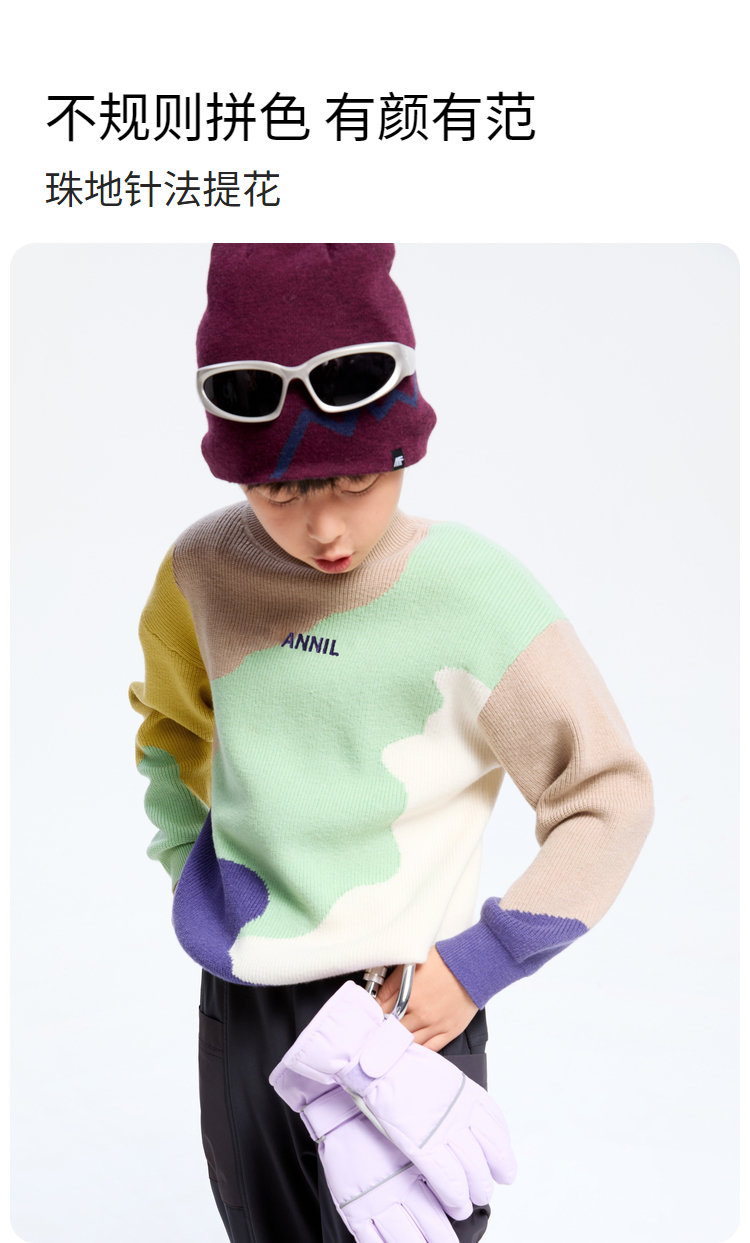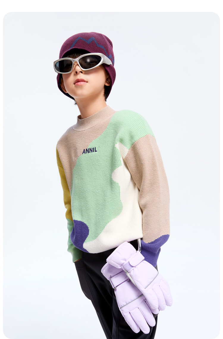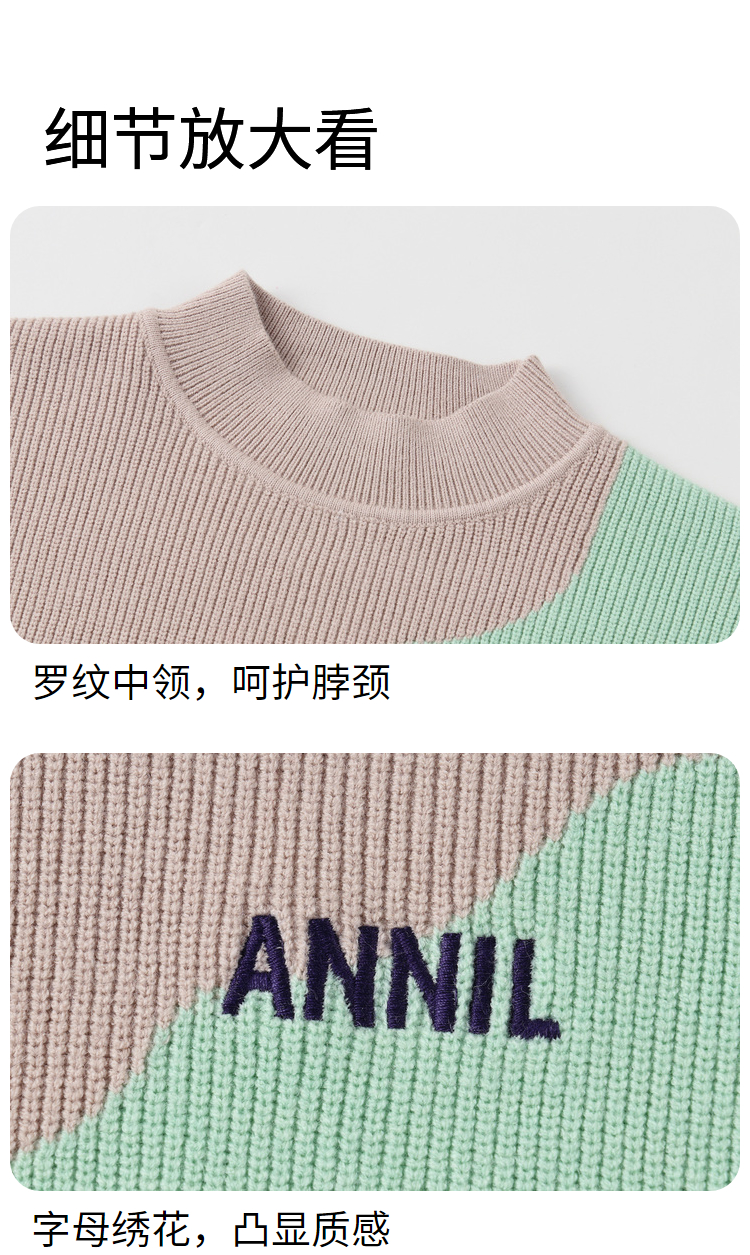 男童潮趣拼色毛衣冬季新款安奈儿童装实体店同款AB444605
