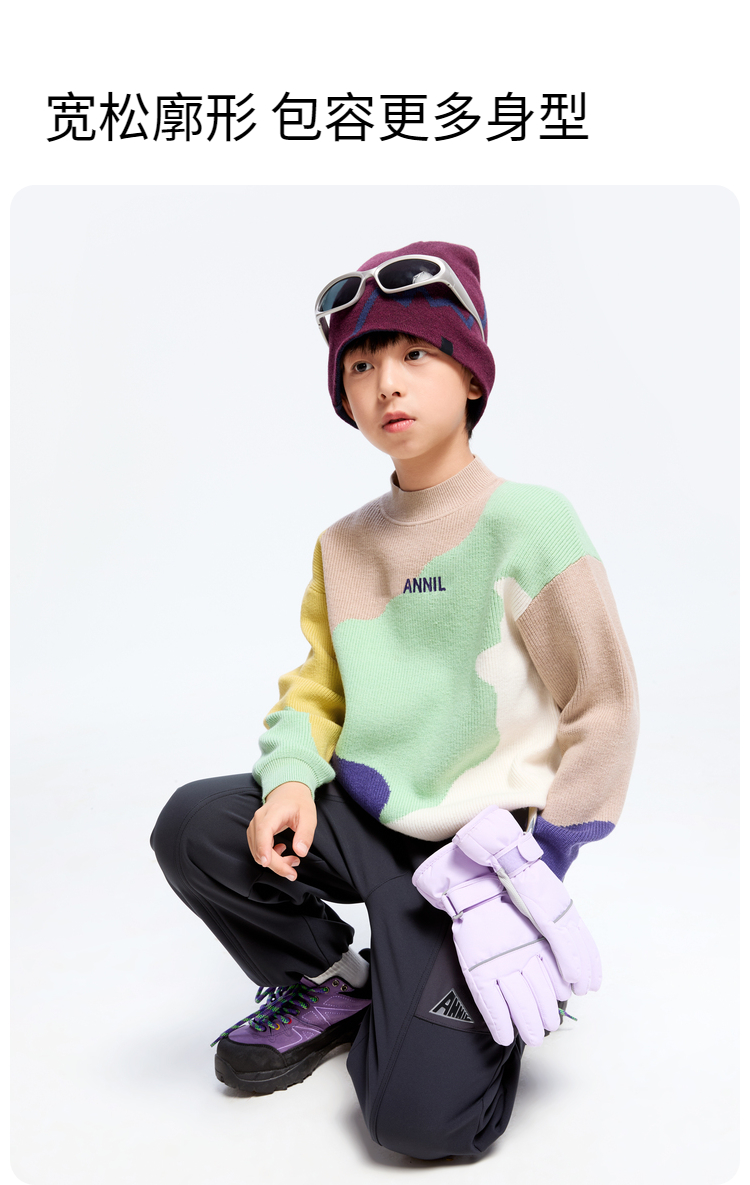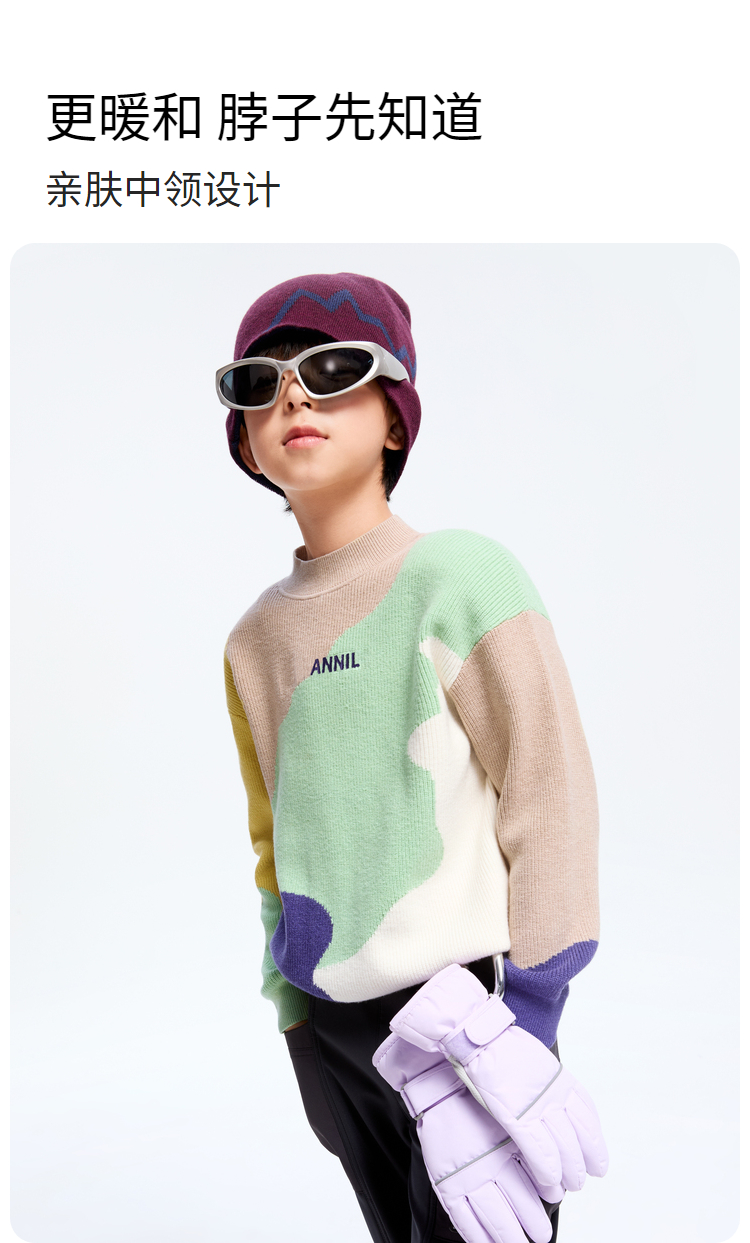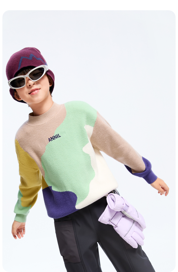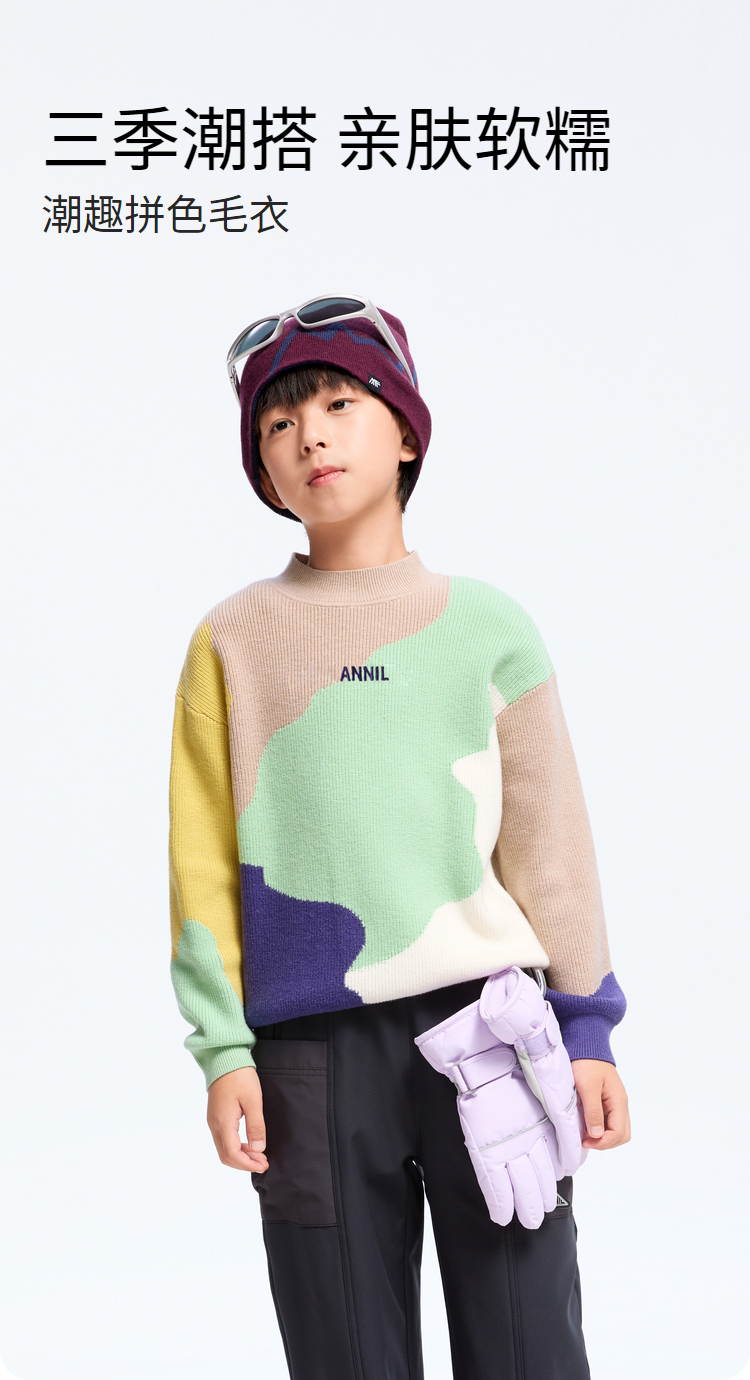 男童潮趣拼色毛衣冬季新款安奈儿童装实体店同款AB444605
