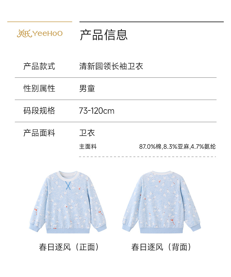 【商场同款】英氏童装男童上衣春秋休闲衣服儿童长袖卫衣百搭新款