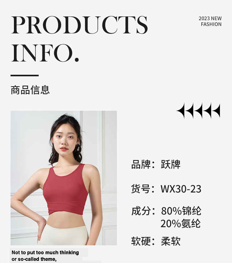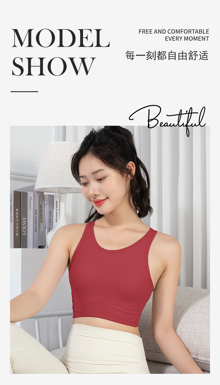 跃牌【倚窗听雨系列】运动内衣女夏季防震高强度跑步健身文胸一体式裸感美背瑜伽背心WX30-23