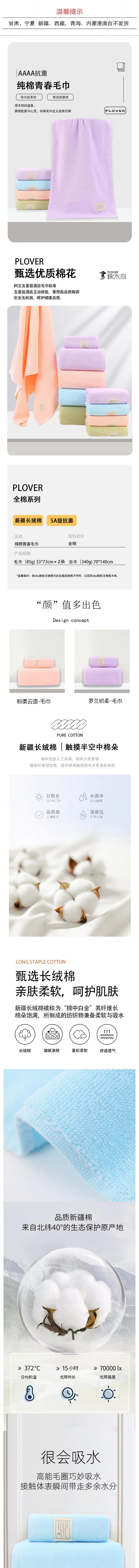 PLOVER啄木鸟 纯棉青春毛巾套装(2条毛巾+1条浴巾)颜色随机 ZMN-MJ013