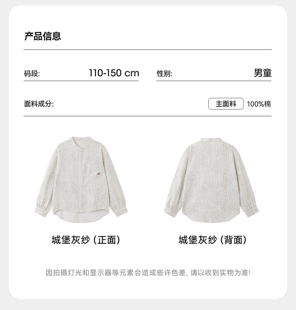 【商场同款】英氏儿童衬衫春夏长袖纯棉男童休闲衬衫上衣外套百搭