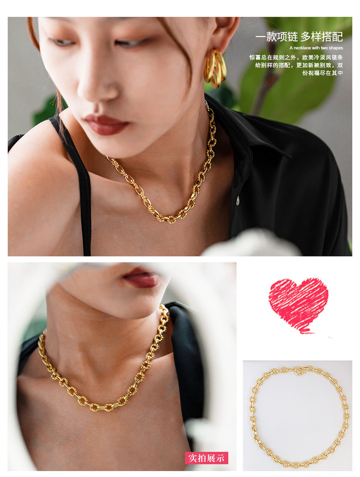【Senmbally】050 欧美时尚百搭电镀真金项链 43CM