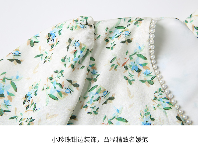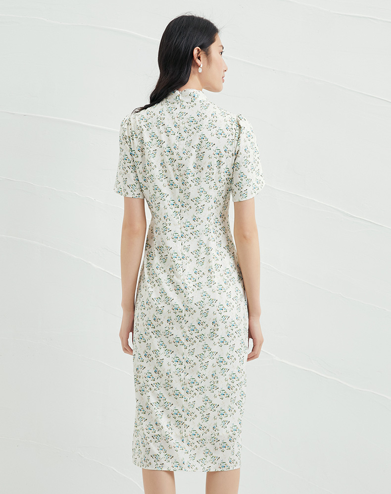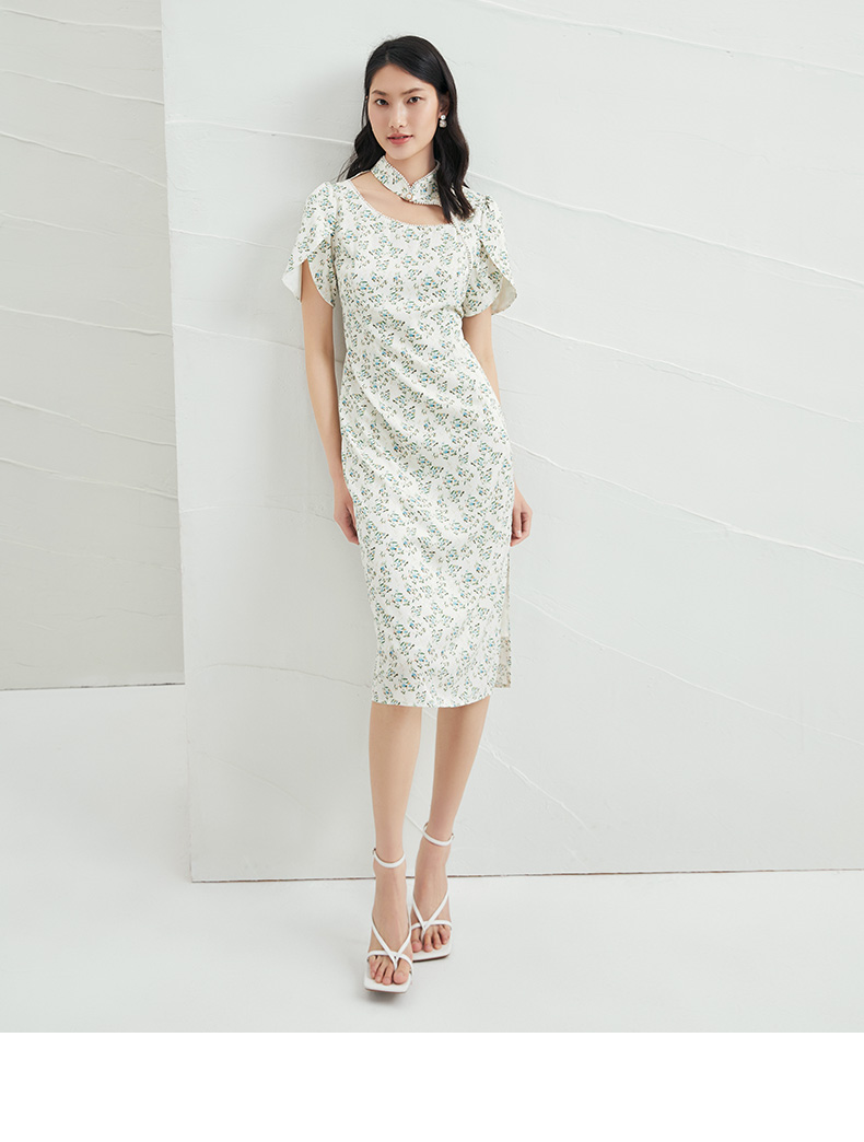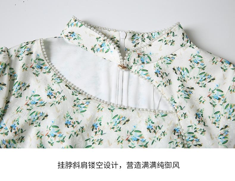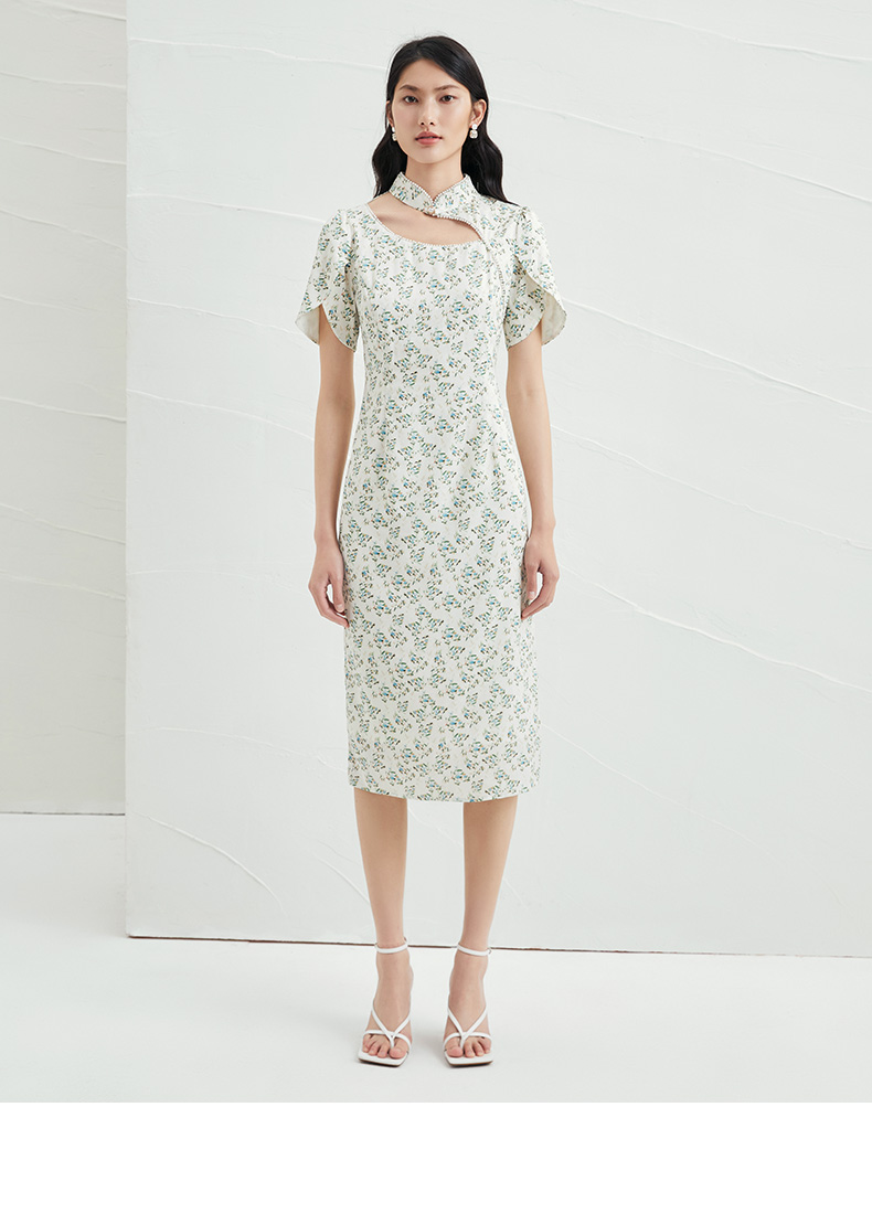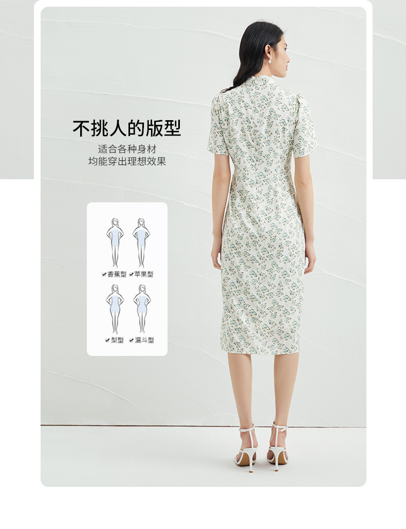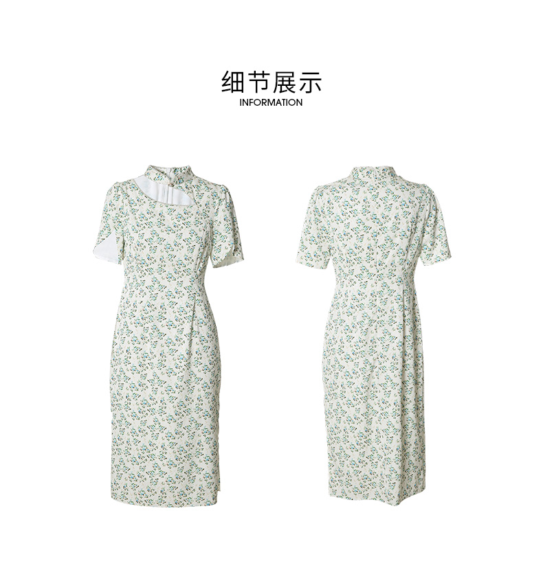 EITIE爱特爱夏新款立领镂空清新碎花温柔气质改良旗袍连衣裙B2207968
