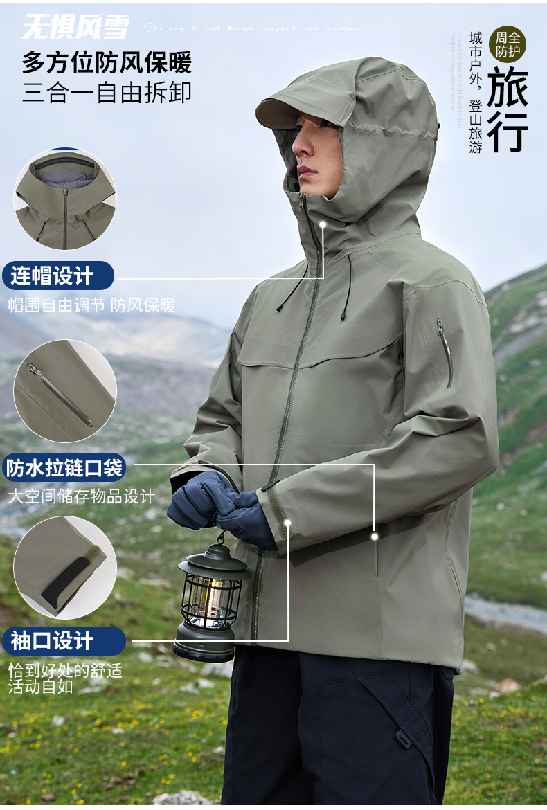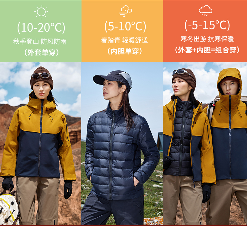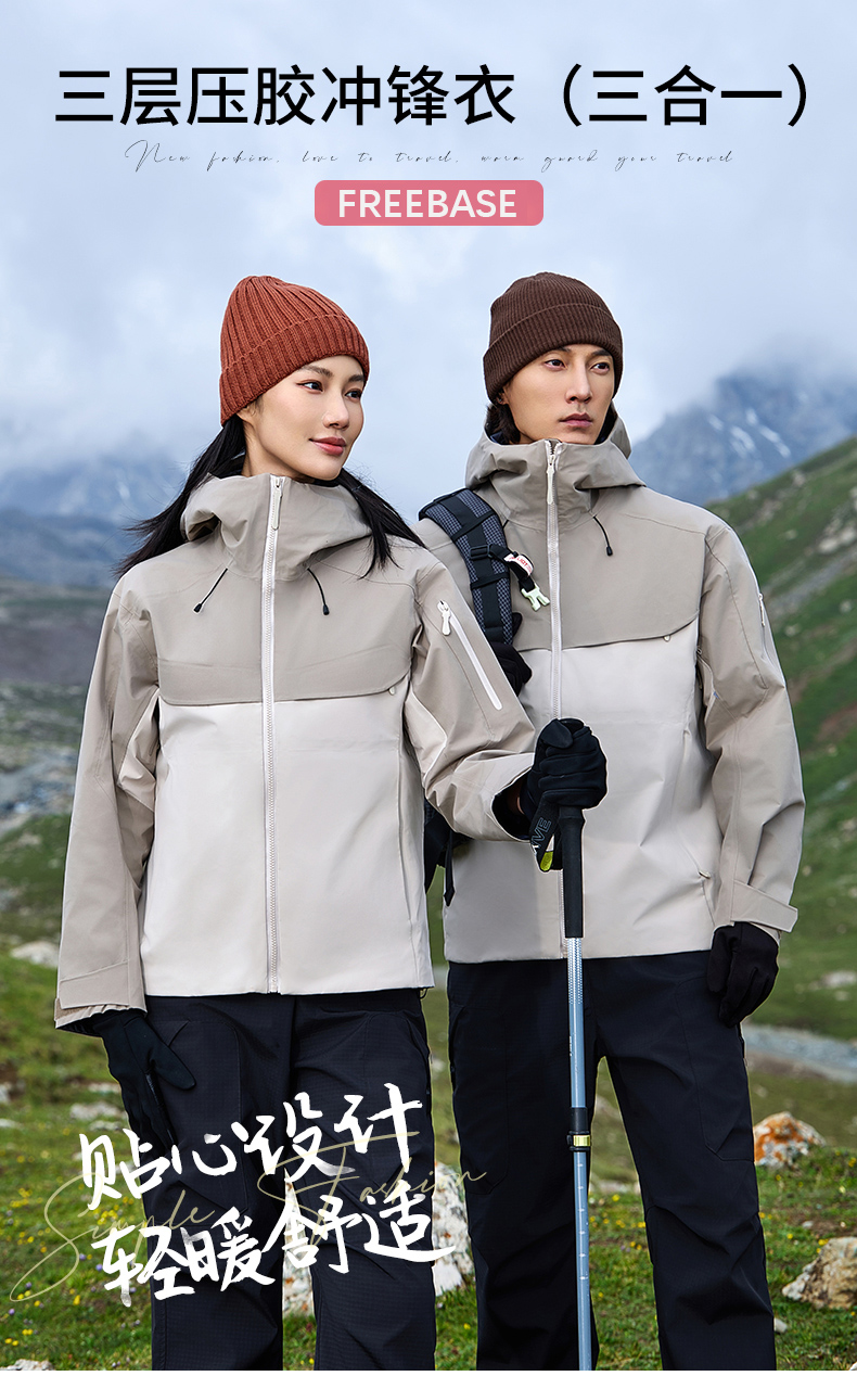 26新品三层压胶羽绒内胆三合一冲锋衣情侣户外多色两件套功能服装 NMJ-2027