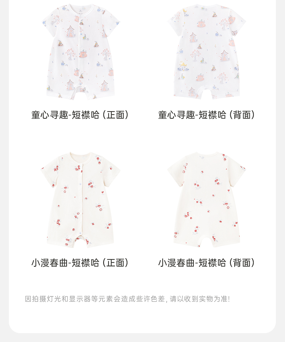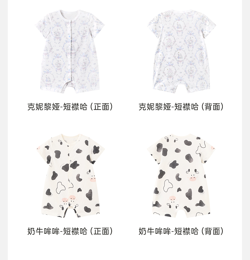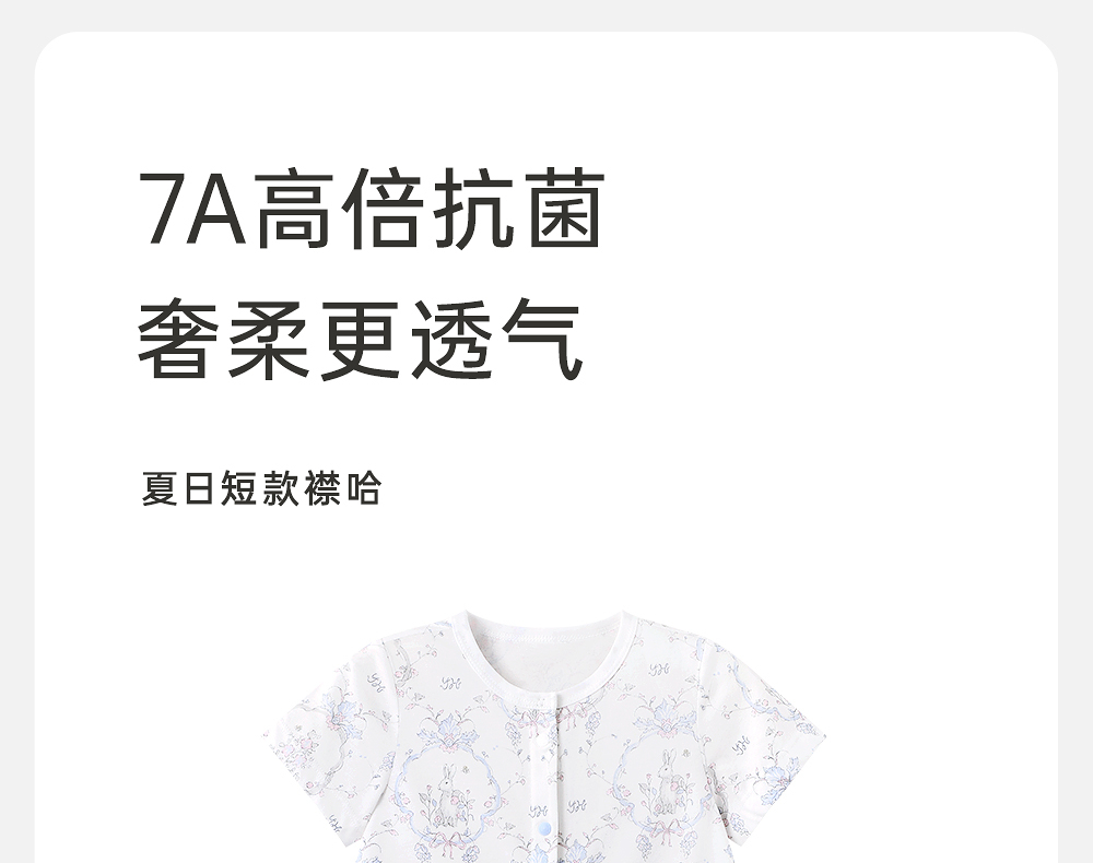 英氏【7A抑菌】婴儿衣服夏季男女宝宝7A抑菌连体衣短袖襟哈幼儿爬服新生儿哈衣新款