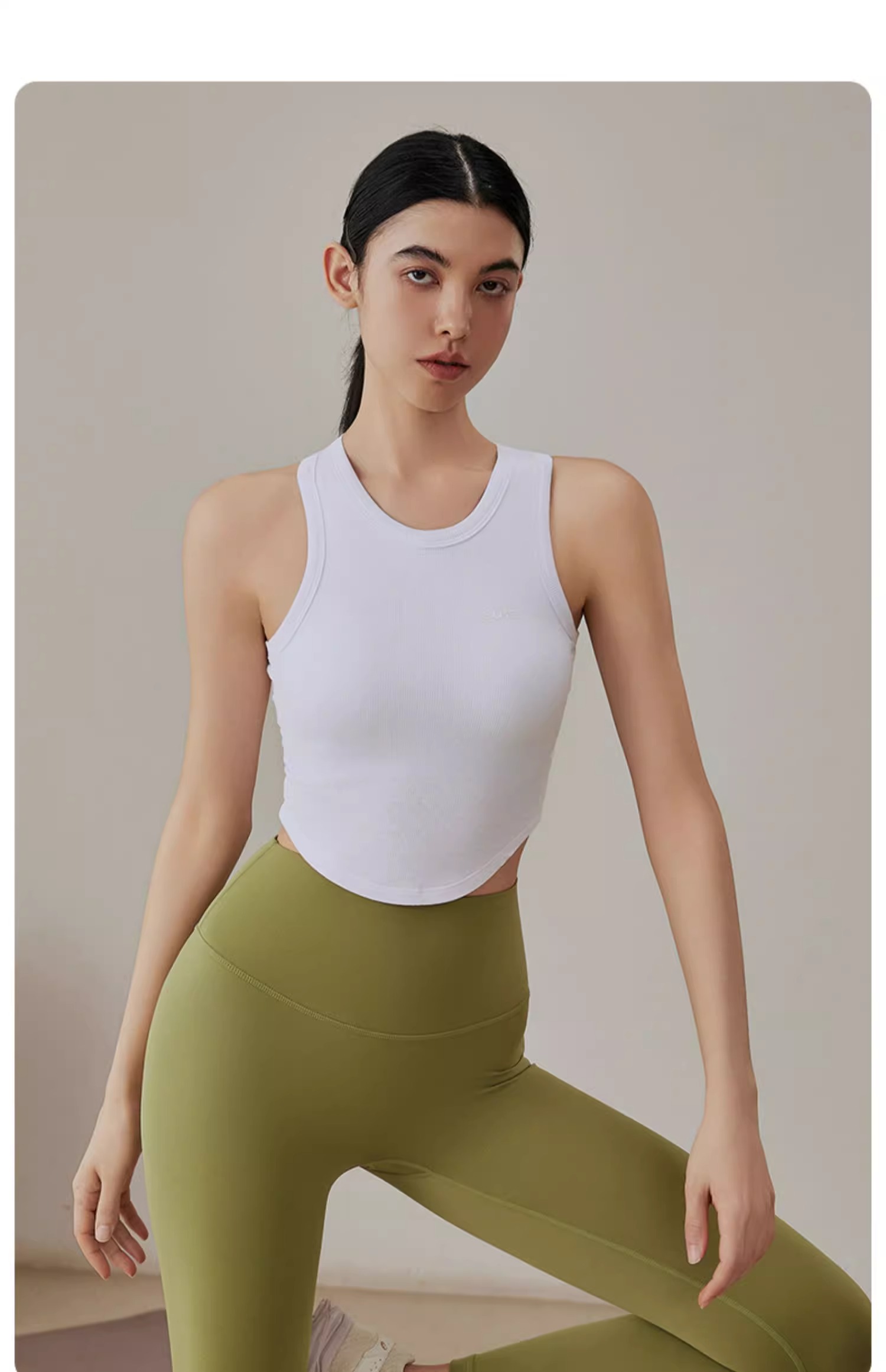 【3~5天发货】跃牌【美度空间】系列 莫代尔罗纹裸感瑜伽背心女夏季圆领半固定运动文胸41015