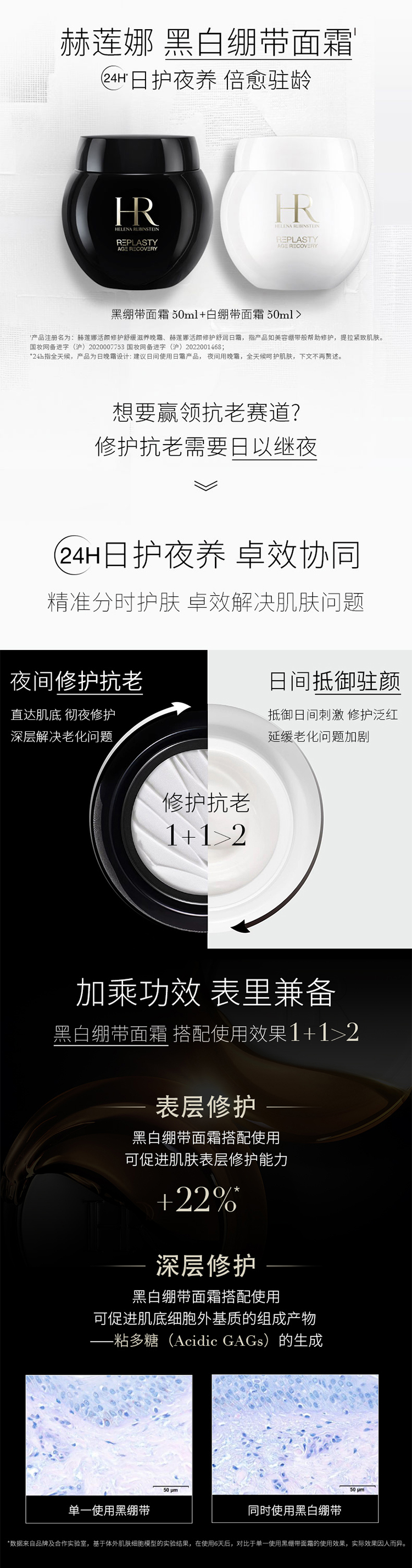 HR/赫莲娜 黑绷带&白绷带 50ml 100ml 日夜修复面霜玻色因活颜修护晚霜舒缓