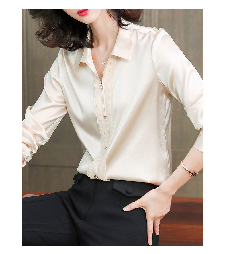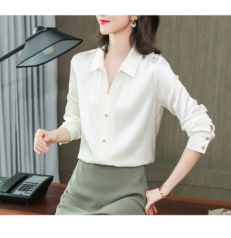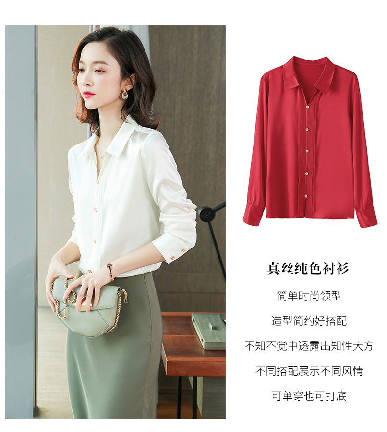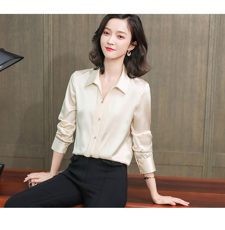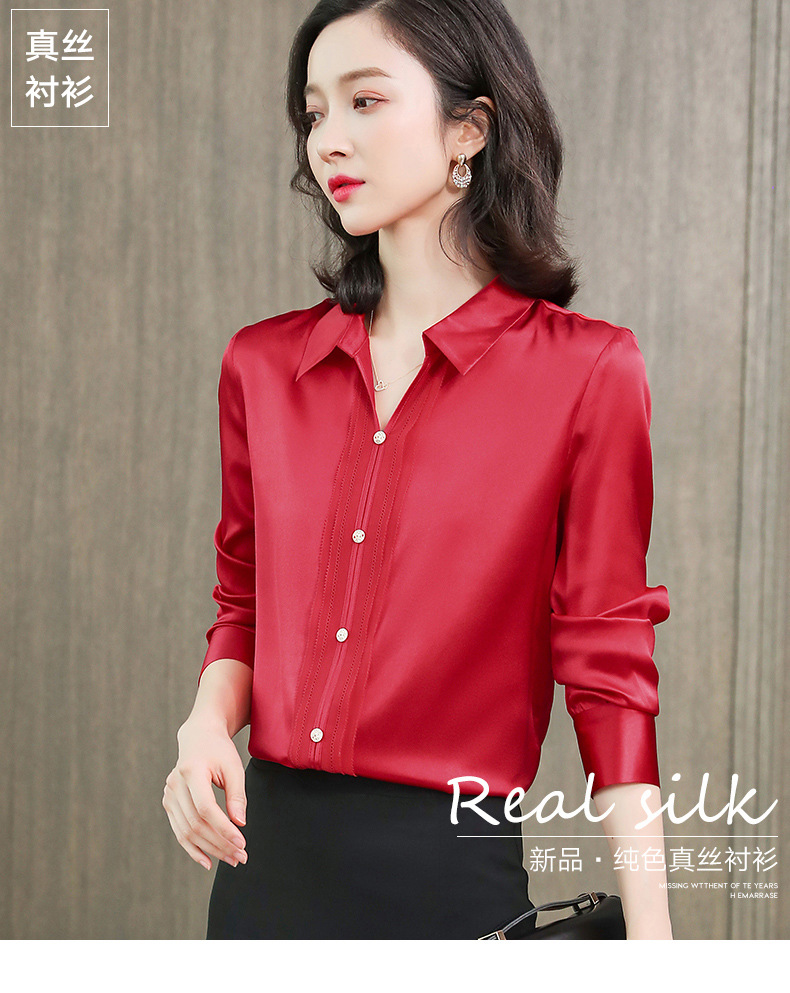 ASE-L6628重磅真丝衬衫女秋季新款V领百搭港风设计感小众桑蚕丝衬衣女