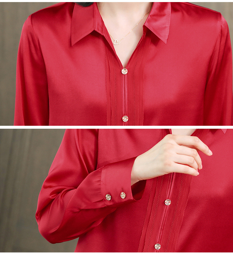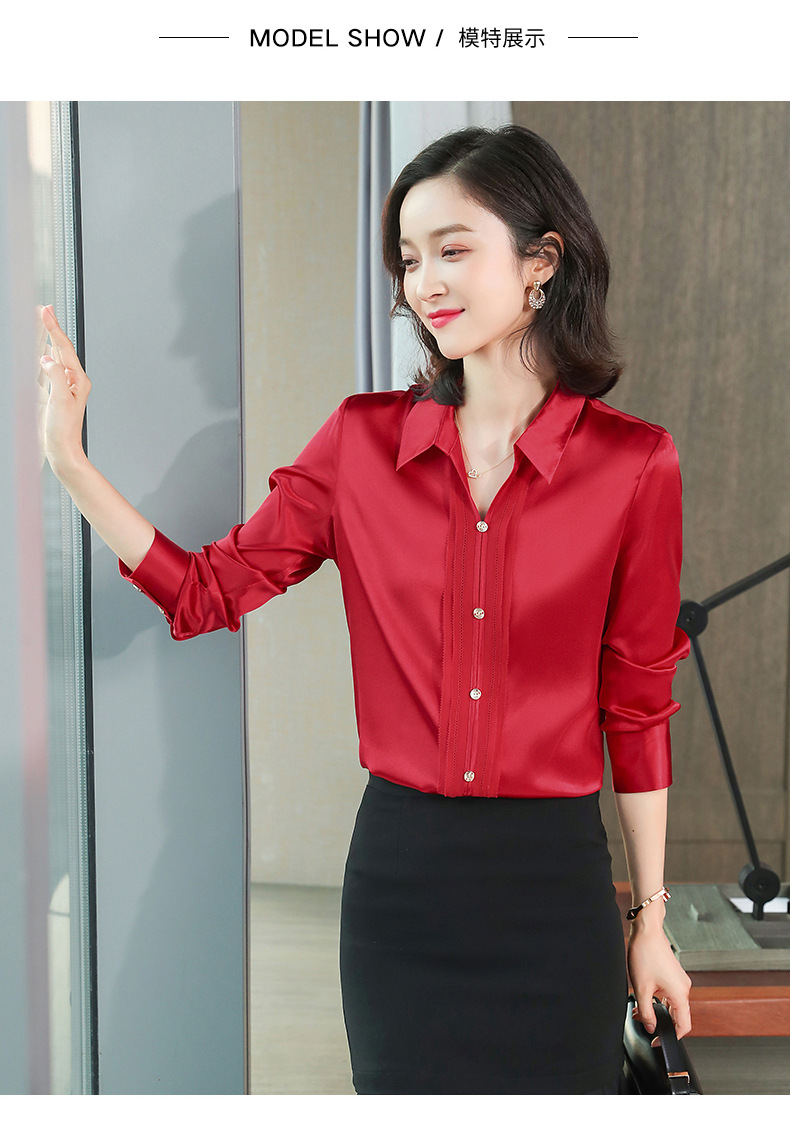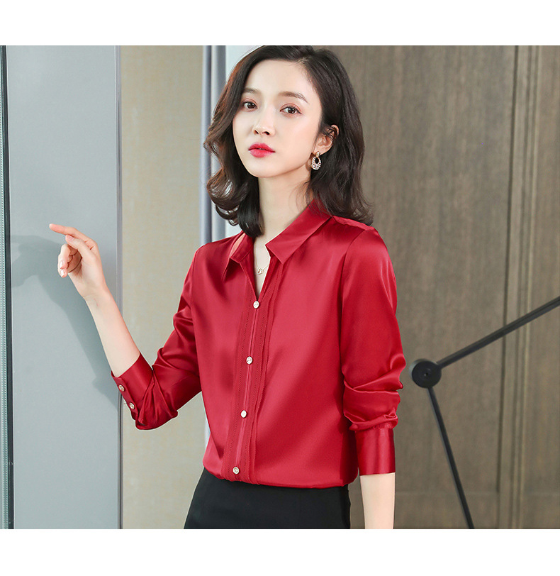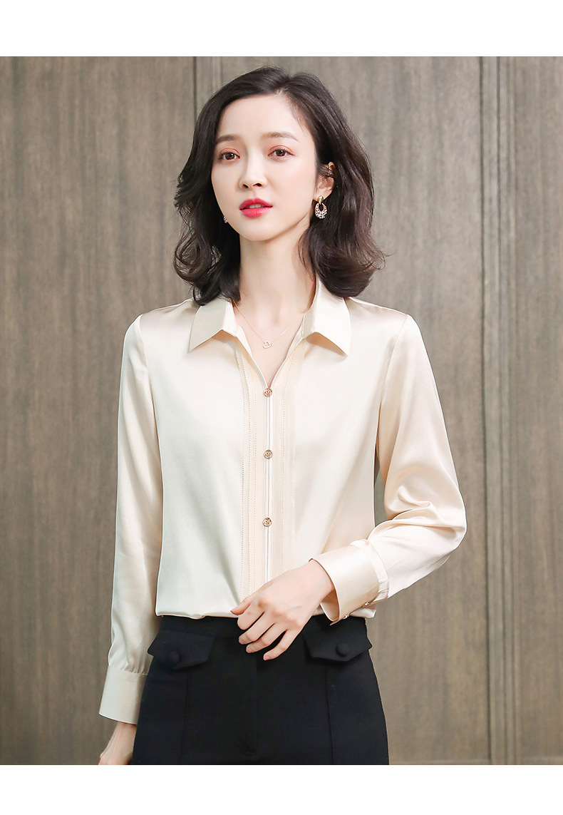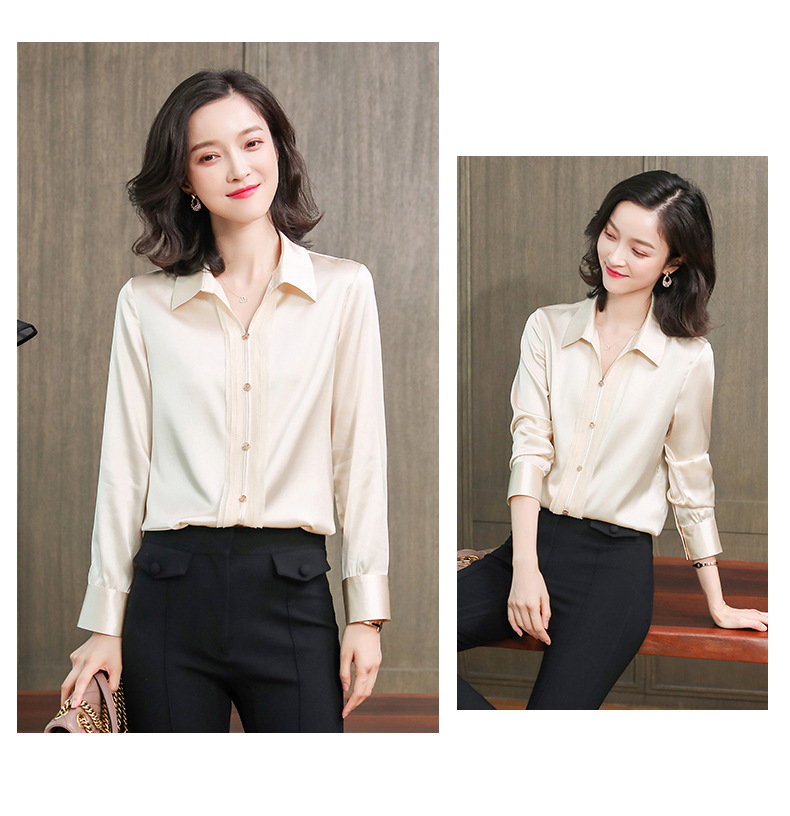 ASE-L6628重磅真丝衬衫女秋季新款V领百搭港风设计感小众桑蚕丝衬衣女