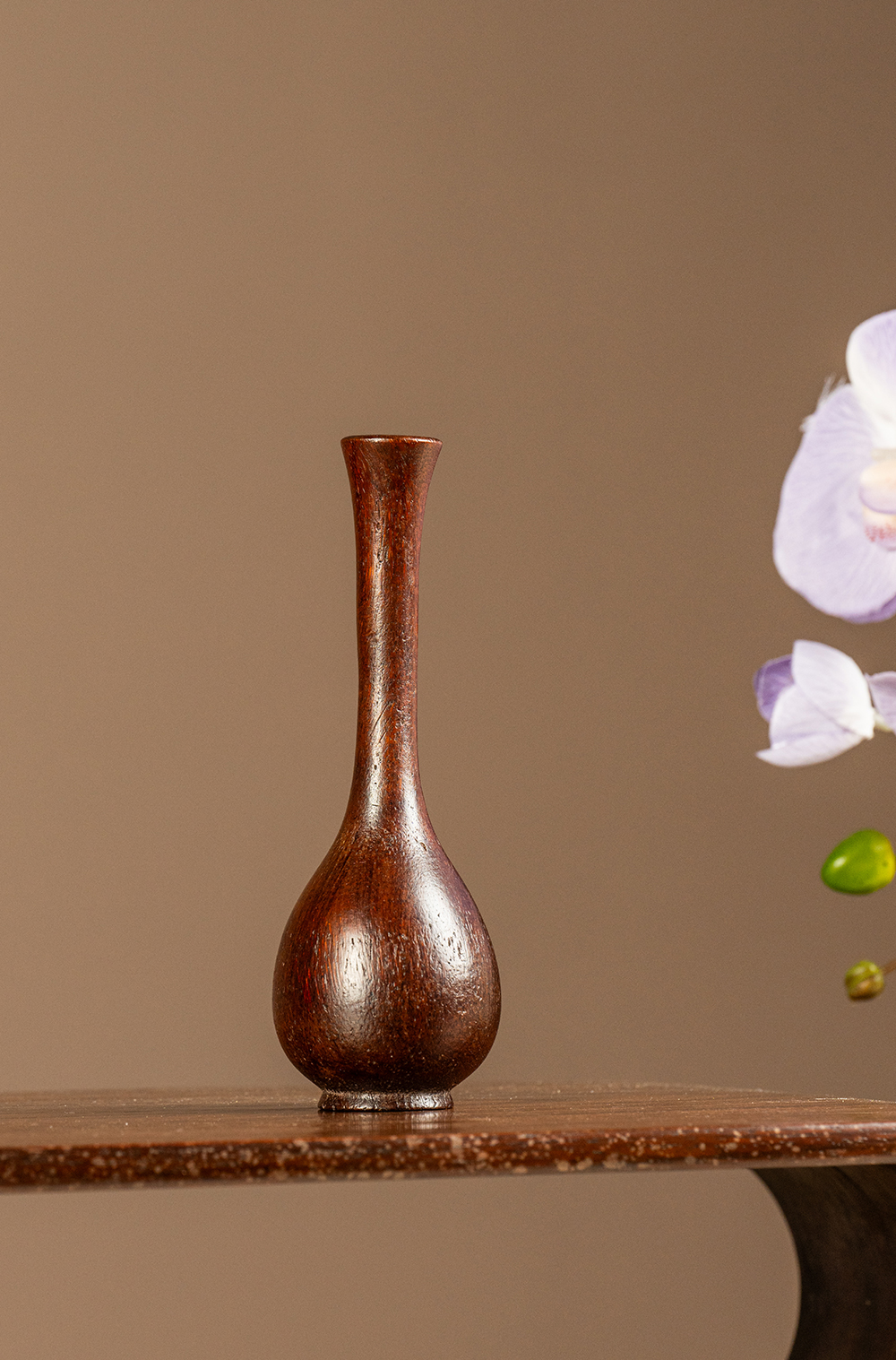 二十世纪 红木嵌云石透雕拐子纹百灵台