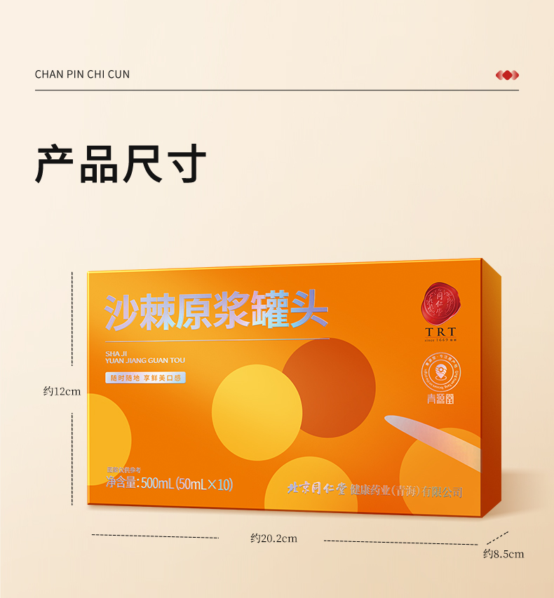 【正宗同仁堂品牌】北京同仁堂 青源堂 沙棘原浆罐头500ml(50ml*10瓶) 拒绝兑水 原汁原味 浆汁浓稠SY