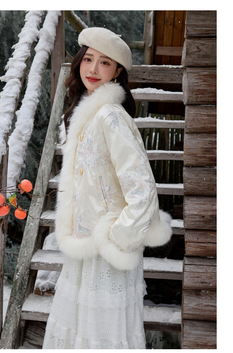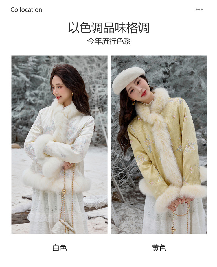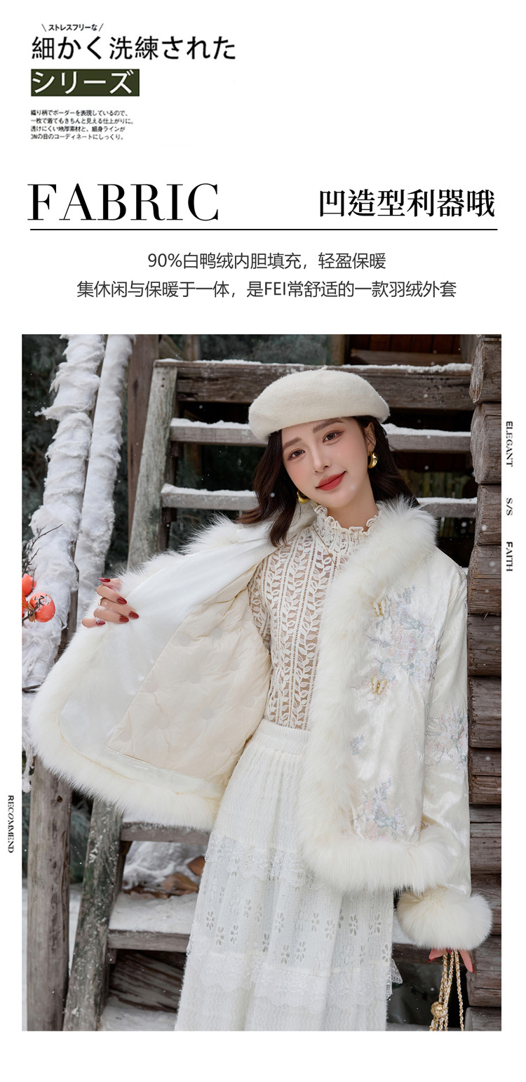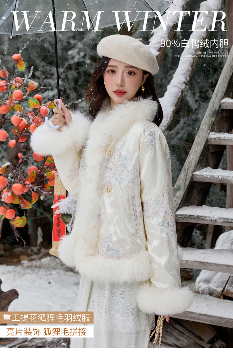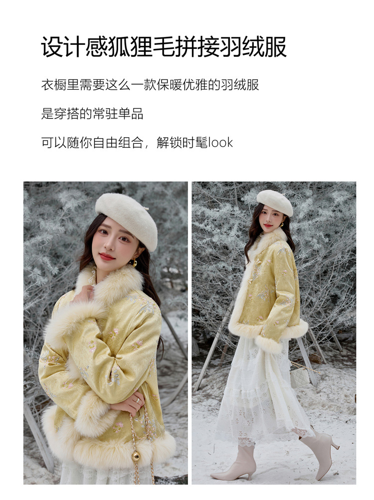 新中式气质轻奢羽绒服,狐狸毛90白鸭绒保暖外套YJLY86860