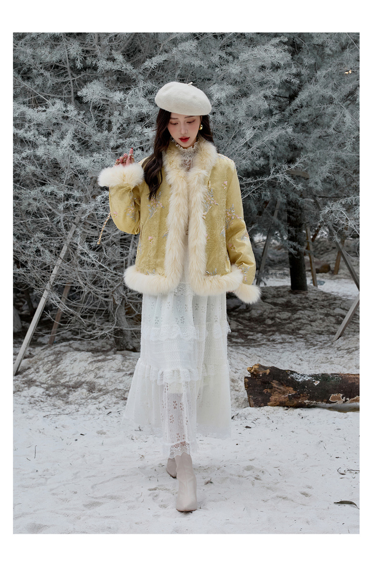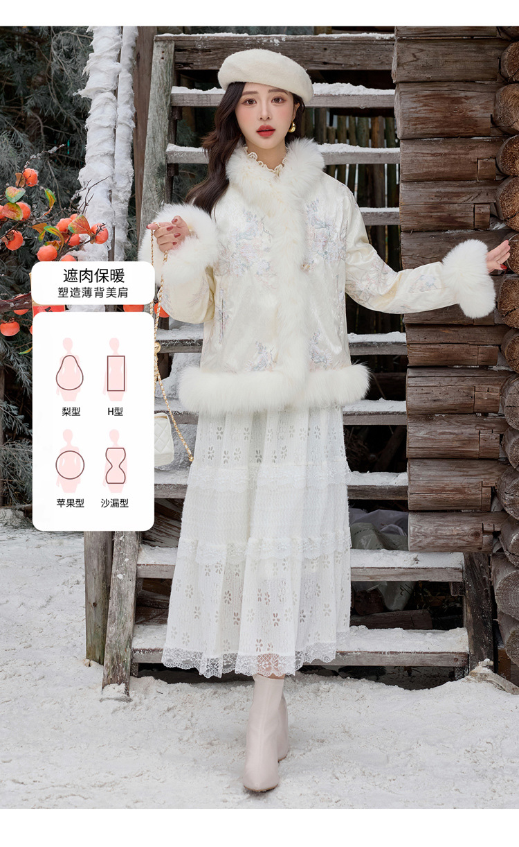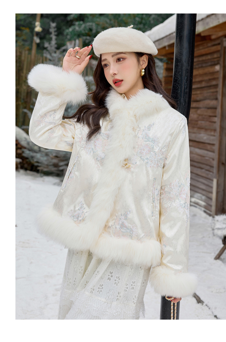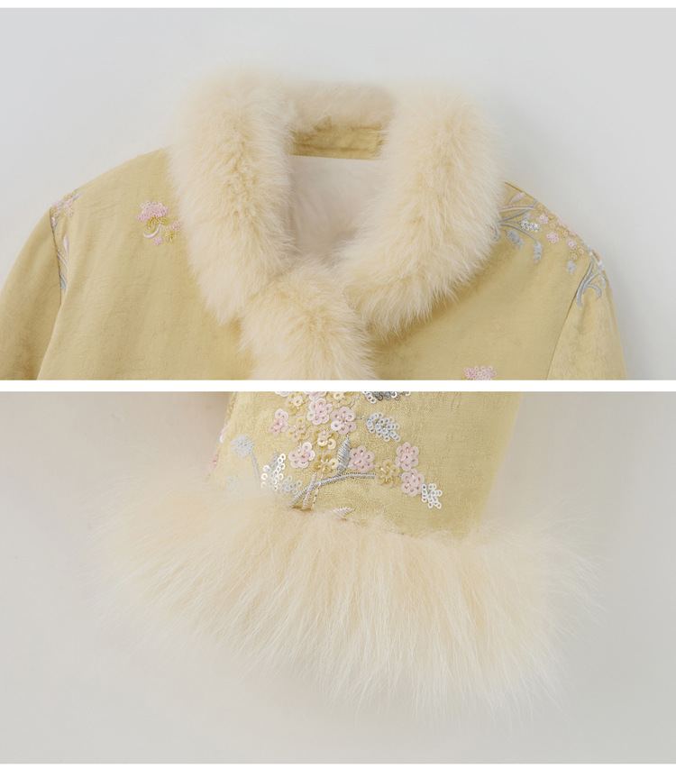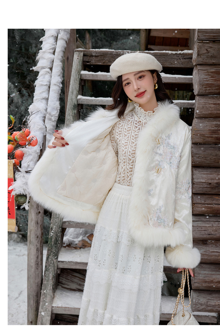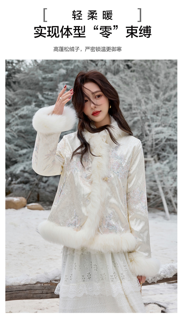新中式气质轻奢羽绒服,狐狸毛90白鸭绒保暖外套YJLY86860