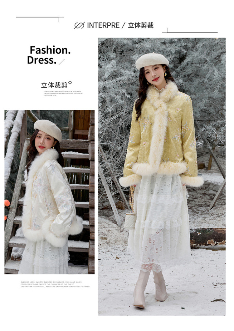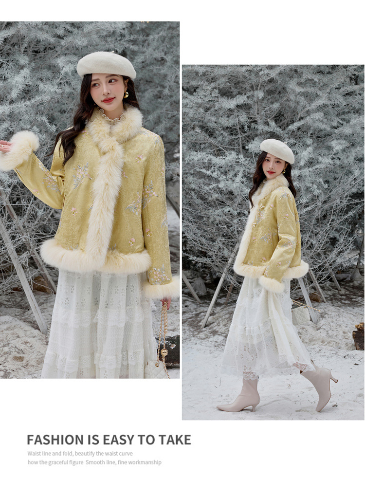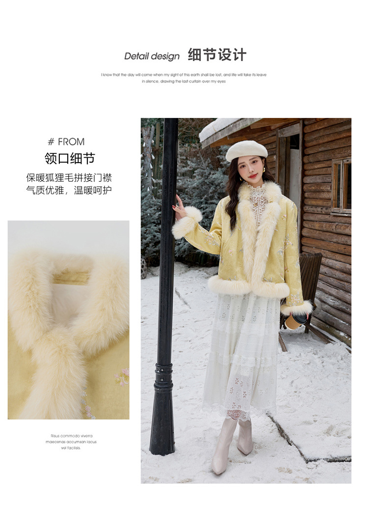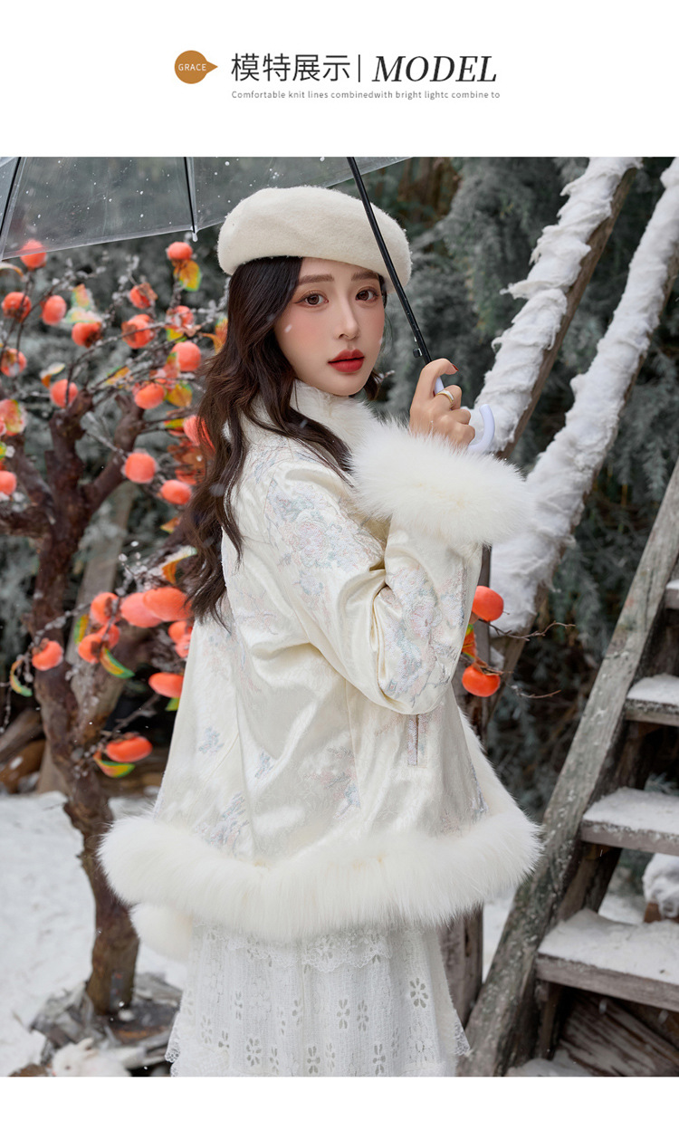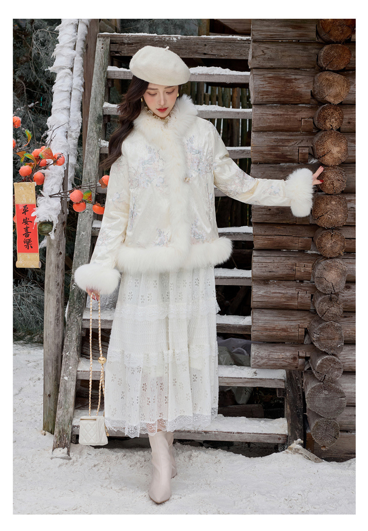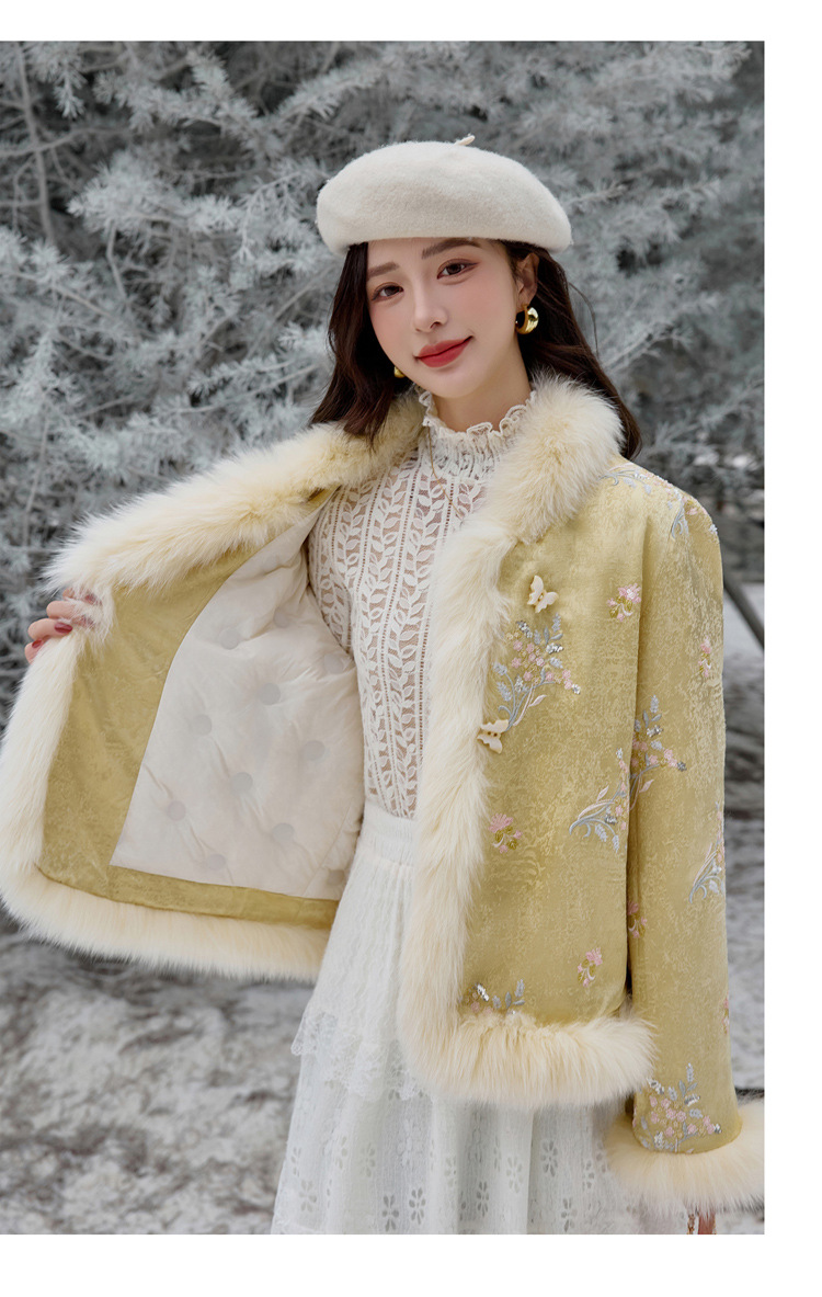 新中式气质轻奢羽绒服,狐狸毛90白鸭绒保暖外套YJLY86860