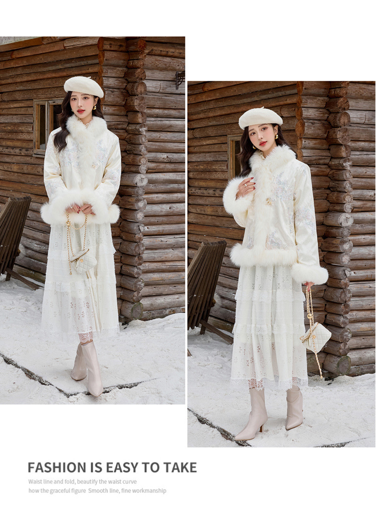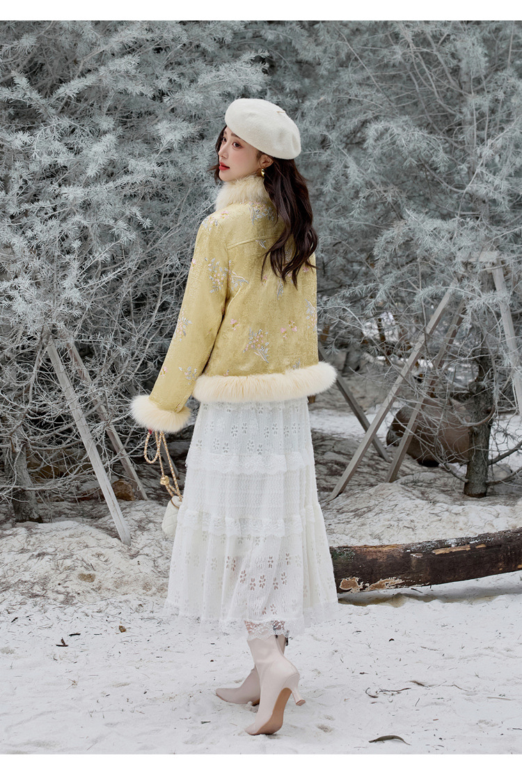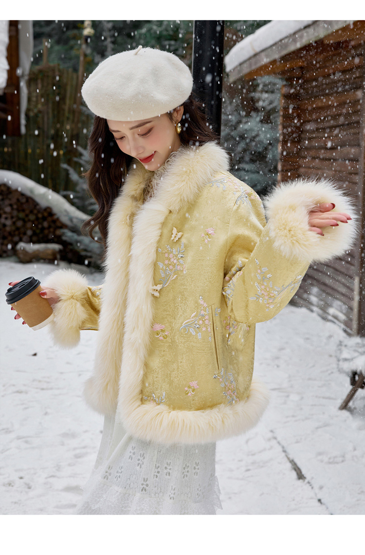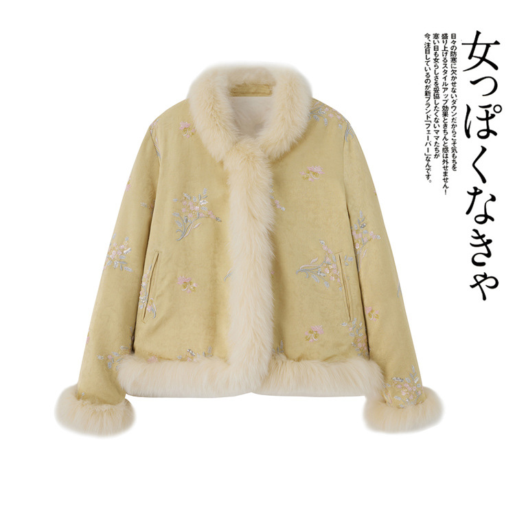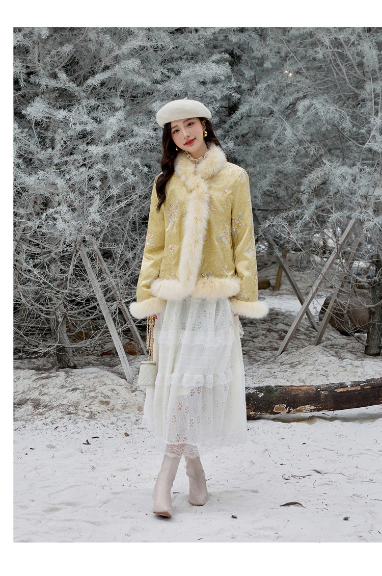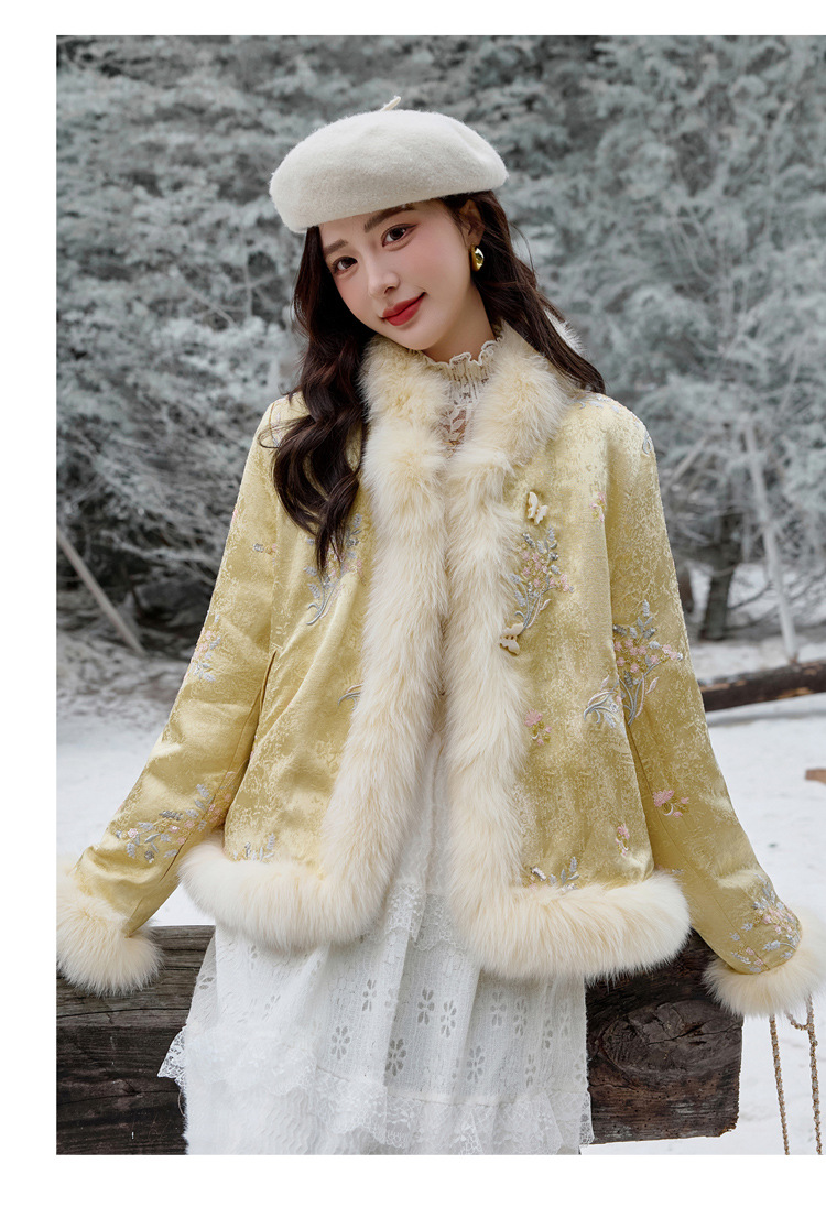 新中式气质轻奢羽绒服,狐狸毛90白鸭绒保暖外套YJLY86860