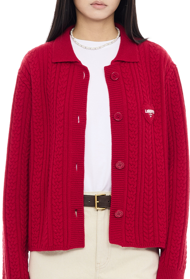 DZZIT2025春季新款绞花工艺新年红开衫上衣