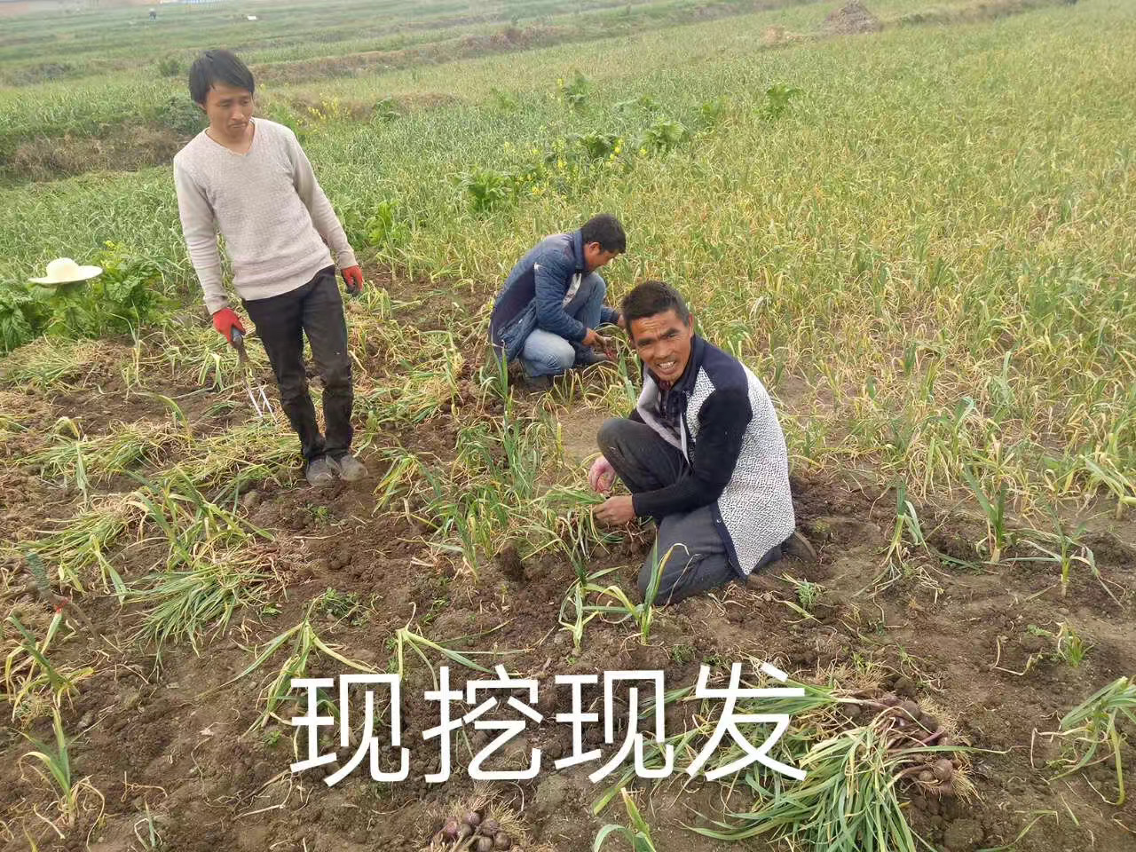 春风轻抚,阳光照耀,紫皮蒜成熟的时。一家老小出动抢丰收,大片大片的蒜地里火热朝天。