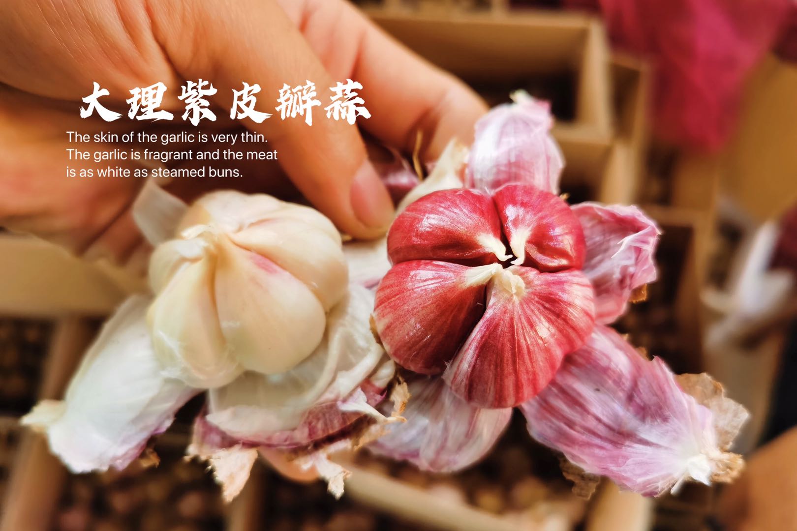 源于自然,我们不能保证每一颗紫皮蒜的瓣数和颜色深浅一致,但我们保证每一颗紫皮蒜都来自云南大理。