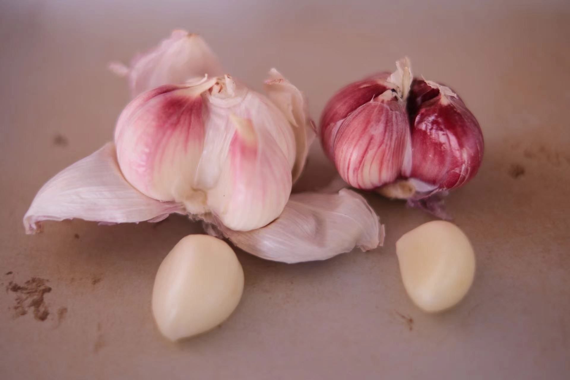 和白皮蒜相比,紫皮蒜口感更辛辣,■富含花青素,■活性成分大蒜素的含量更高。