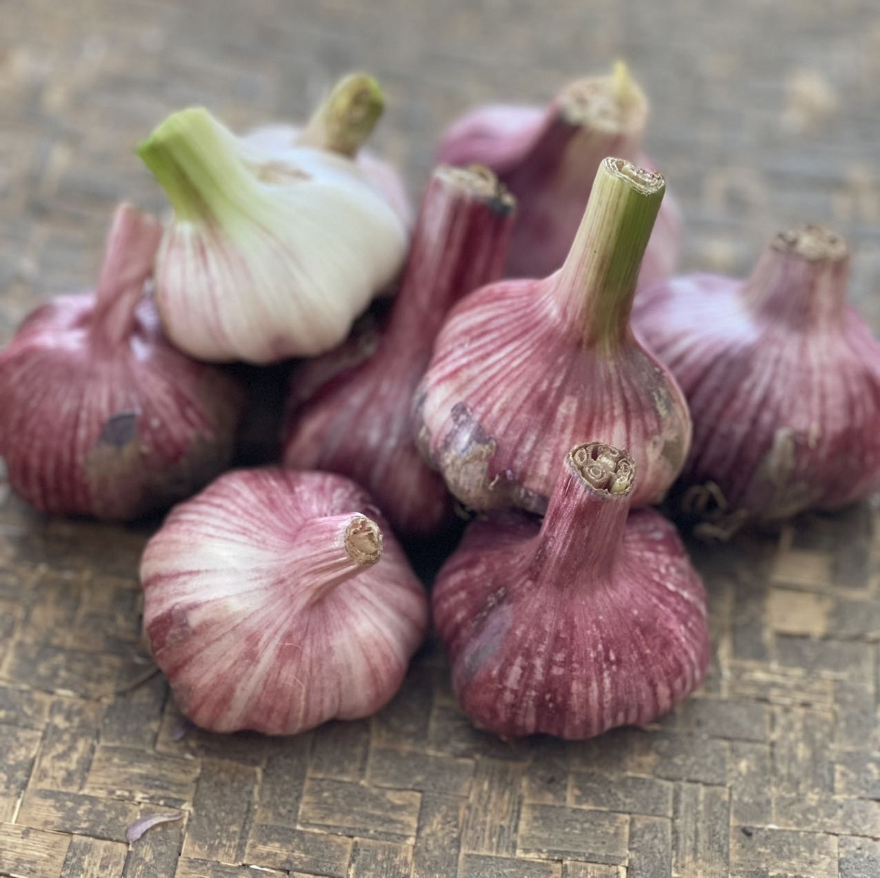 刚出土的紫皮分瓣蒜,味道一绝,蒜香浓郁,蒜汁充足,辛辣可口,烹饪入菜提味增鲜,杀菌消毒一把好手!
