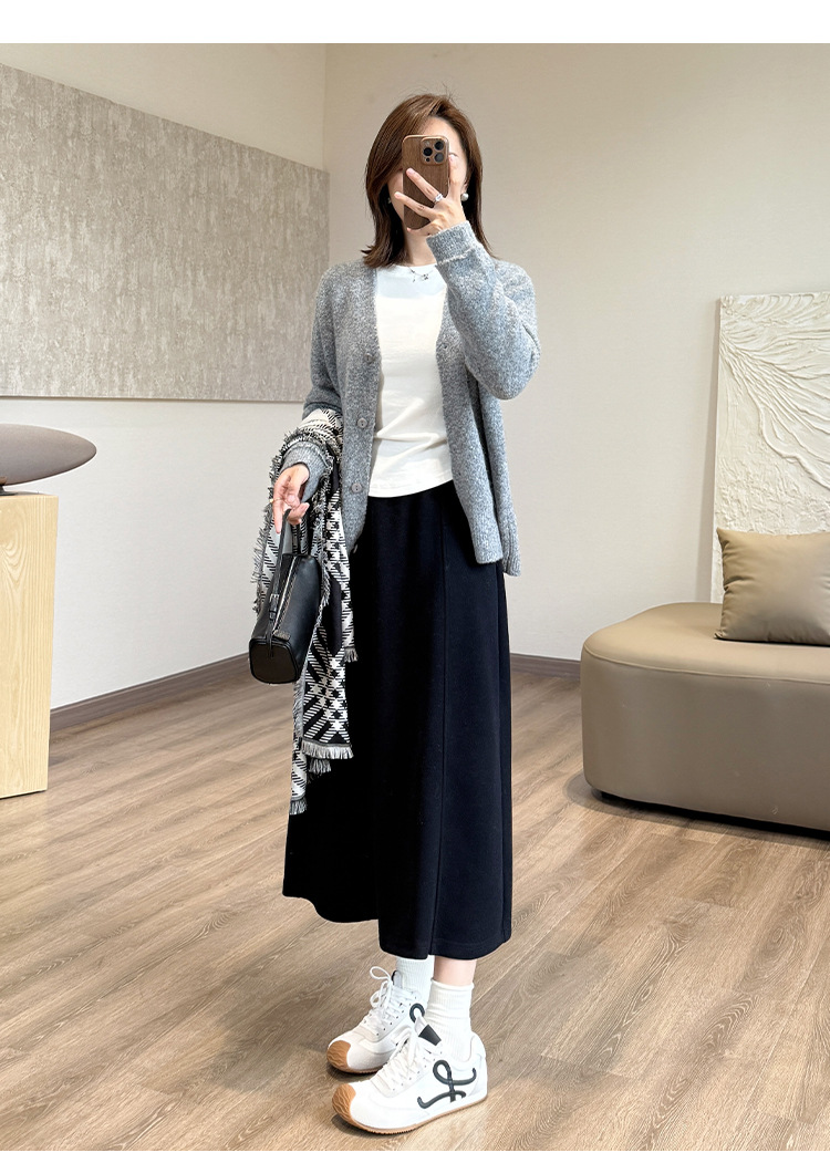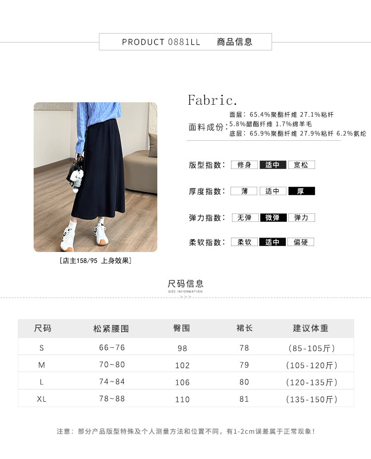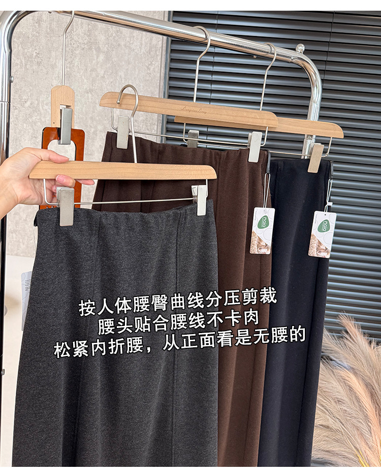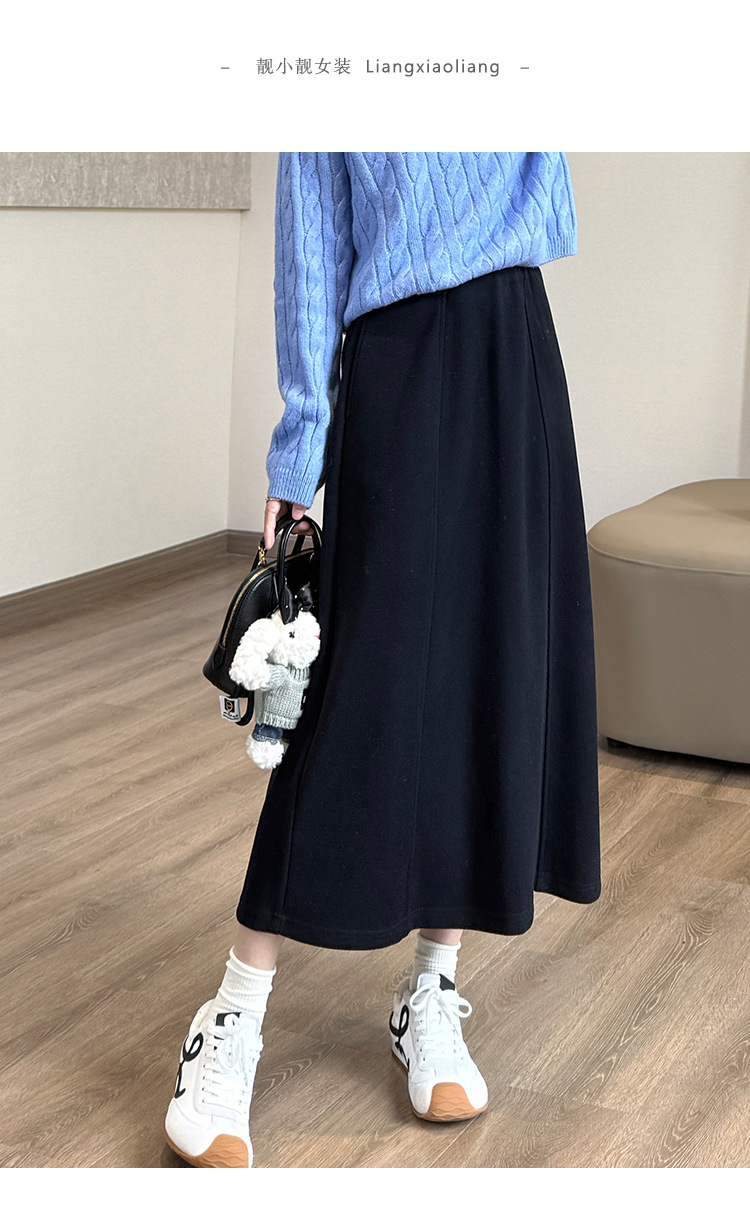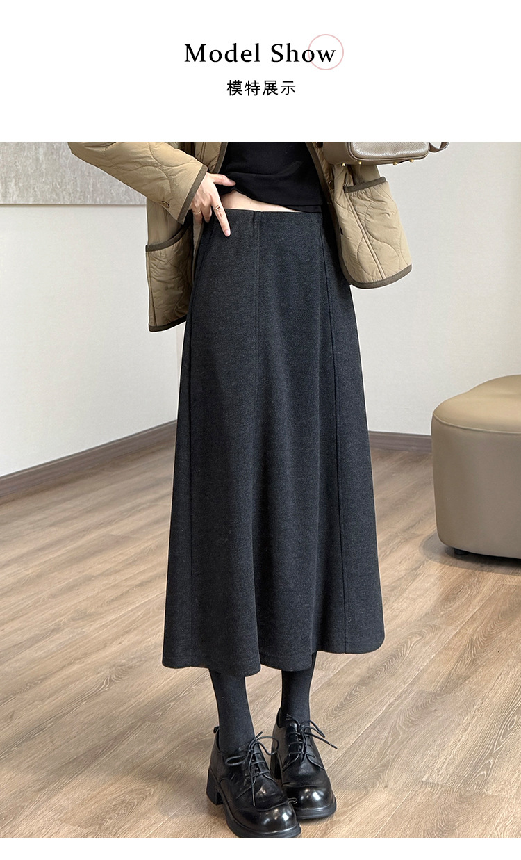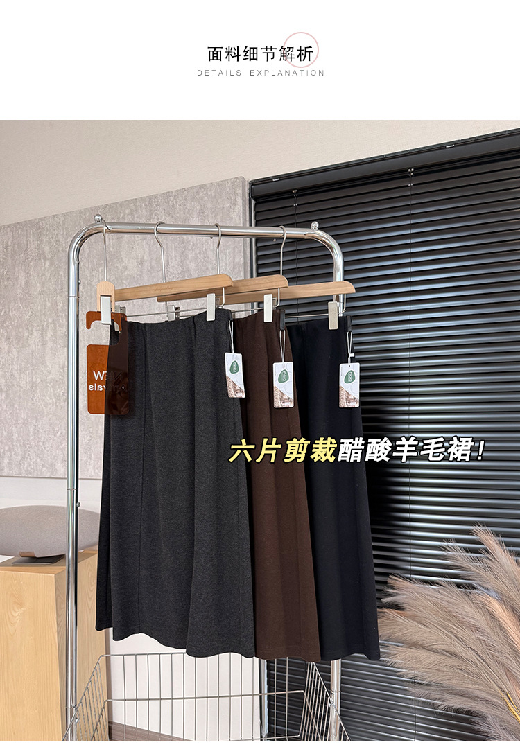 丁摩 醋酸羊毛6片裙【一键藏肉】内折松紧腰秋冬长裙口袋半身裙5ZF-00802