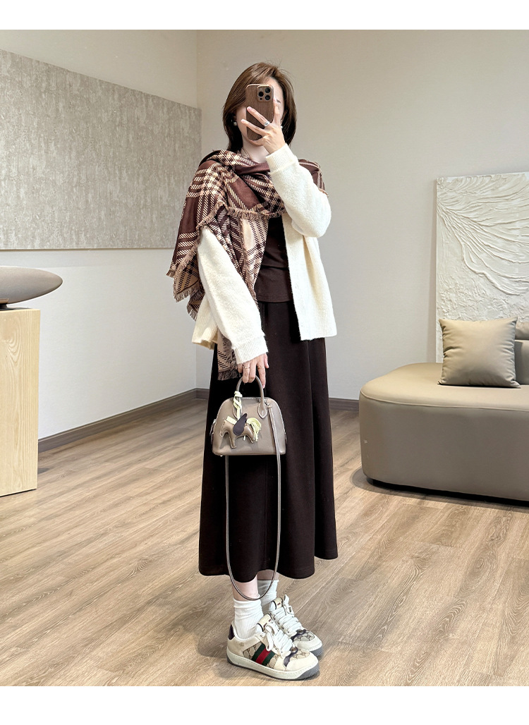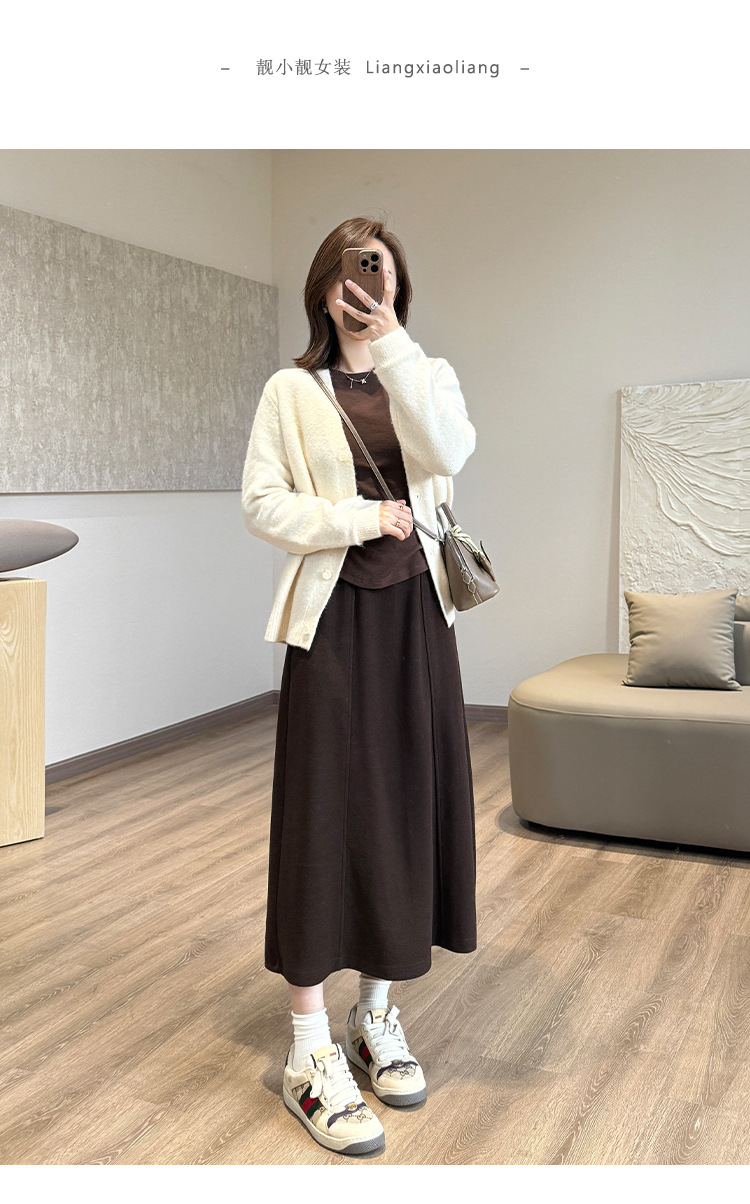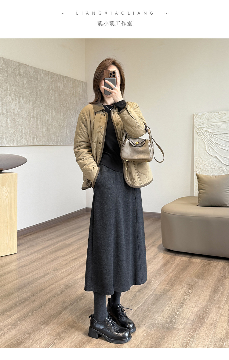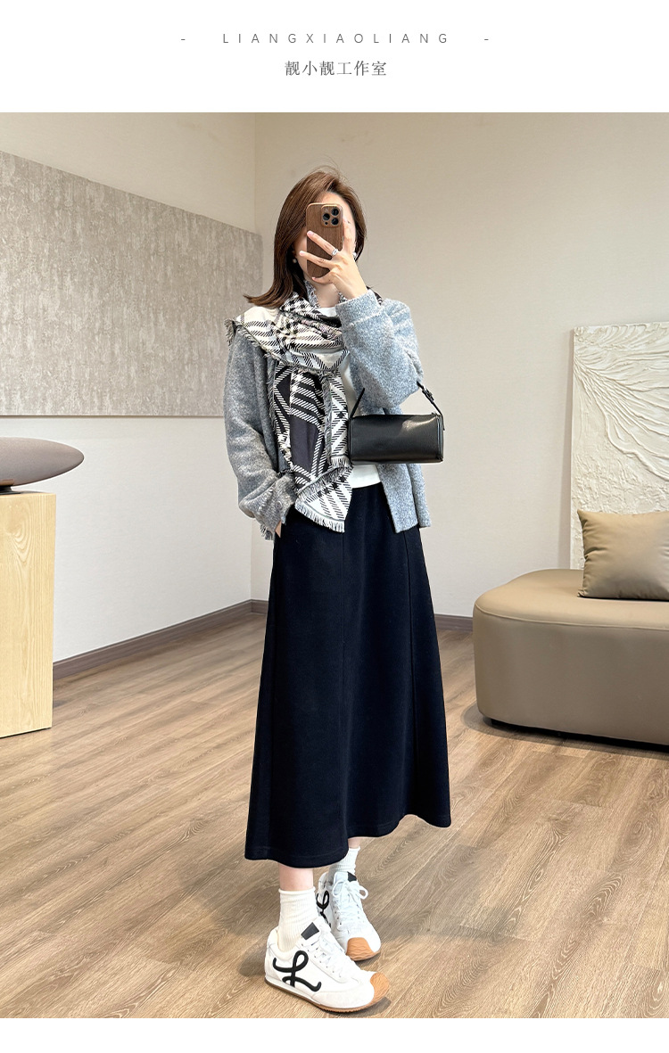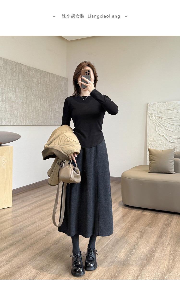丁摩 醋酸羊毛6片裙【一键藏肉】内折松紧腰秋冬长裙口袋半身裙5ZF-00802