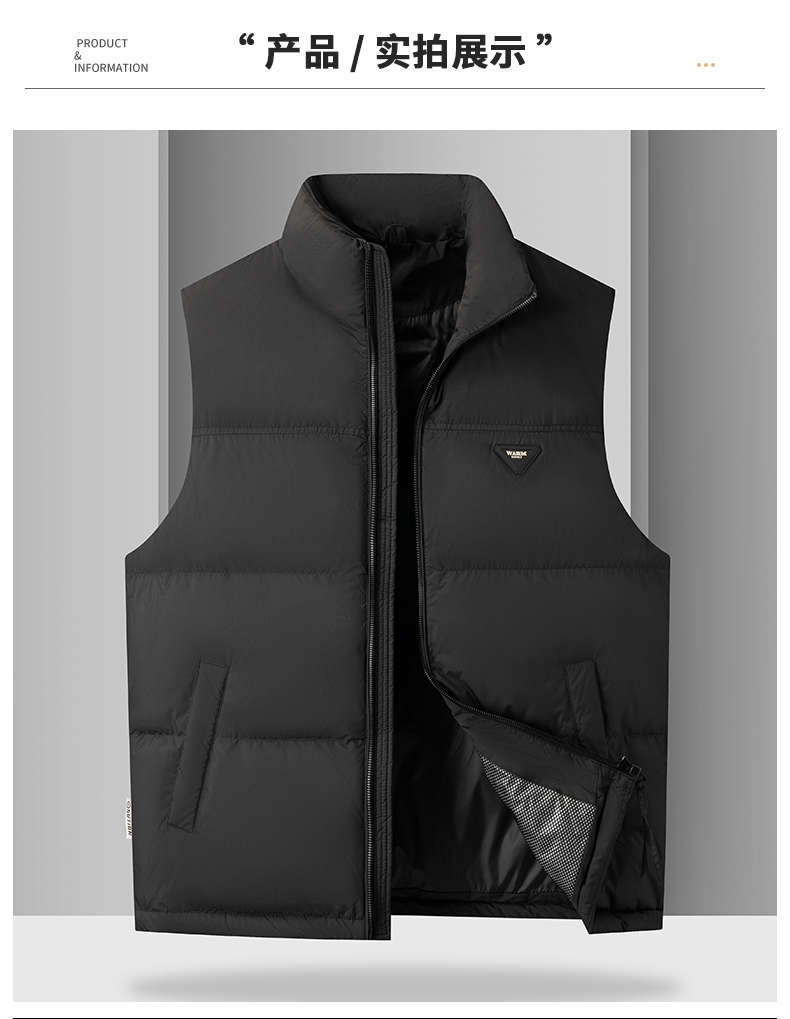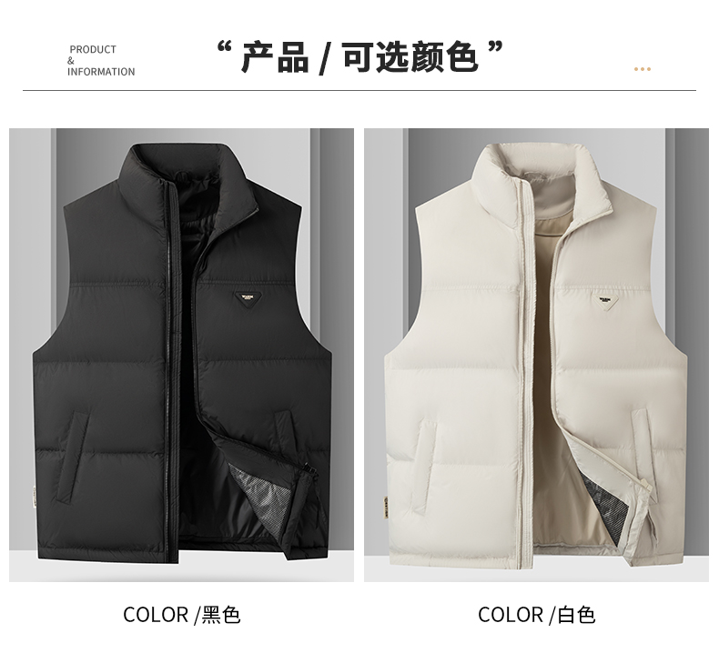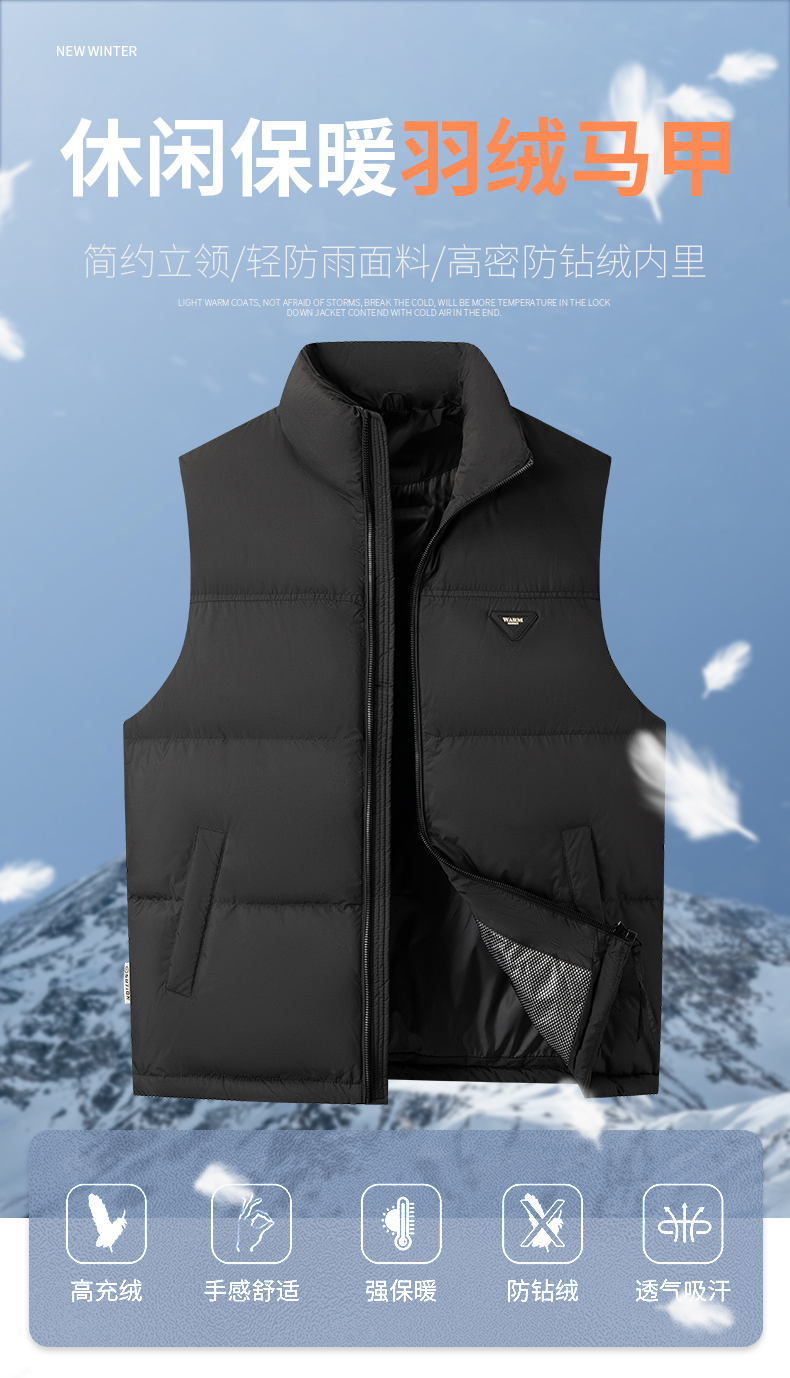 【羽绒】【新款DKP】大依优型大码男装立领羽绒马甲简约休闲宽松外套男坎肩背心上衣保暖