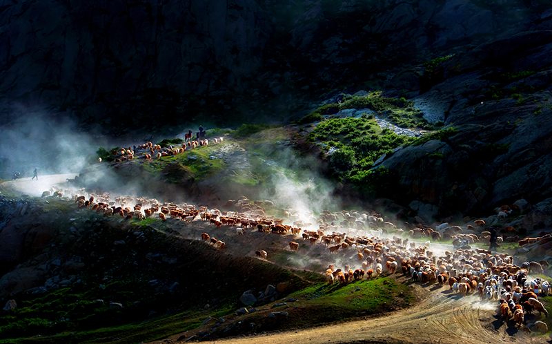 继续拍摄牧区大型转场,一路深度拍摄,跟踪浩浩荡荡的牛羊大型转场,争取满足摄影爱好者的拍摄愿望。