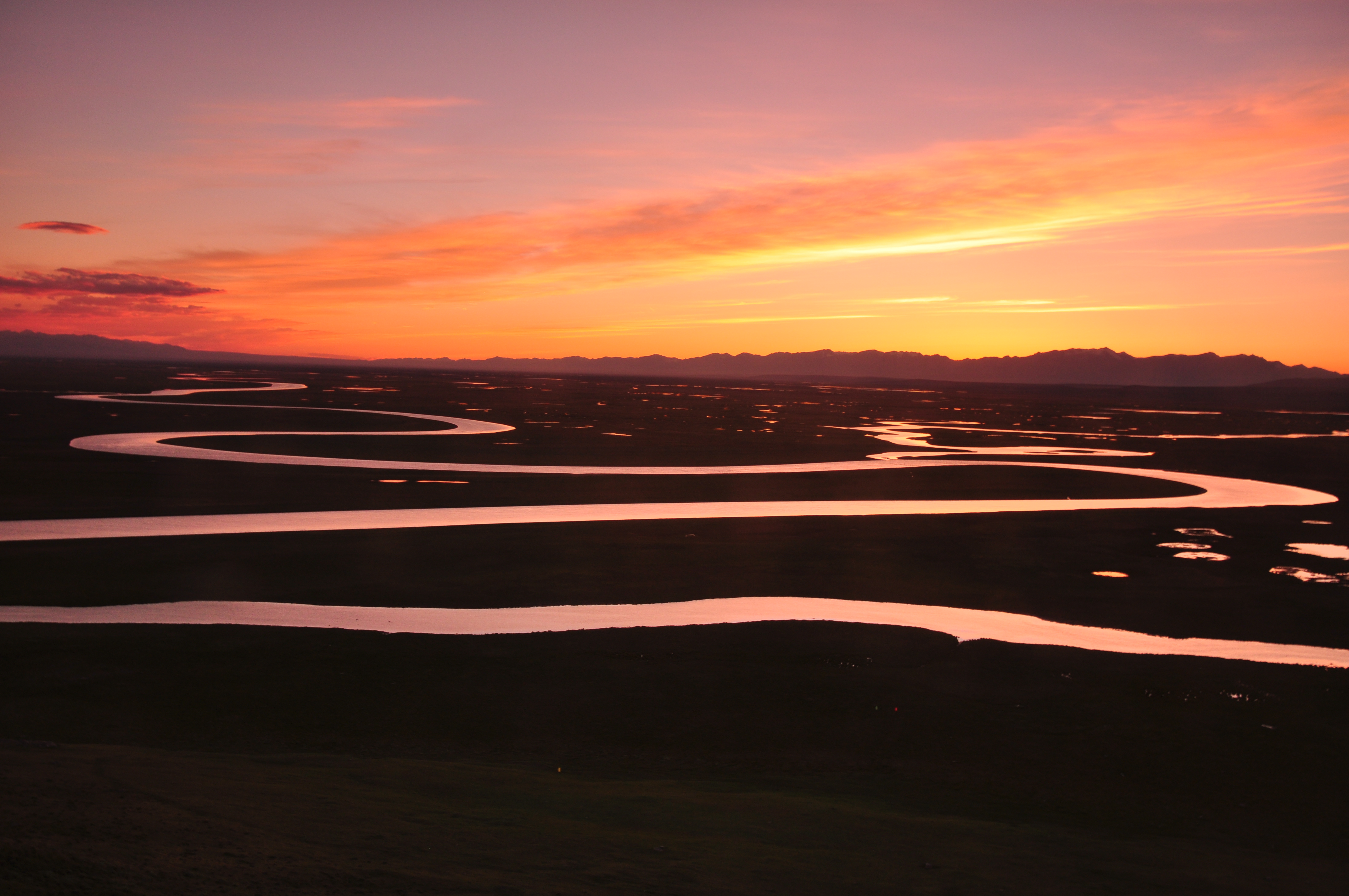 巴音布鲁克草原、拍摄著名的天鹅湖, 九曲十八湾日落