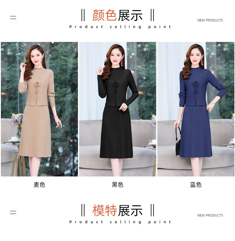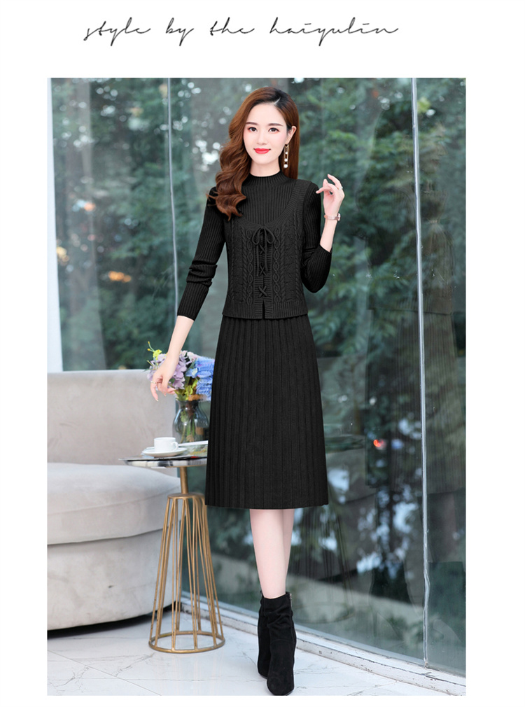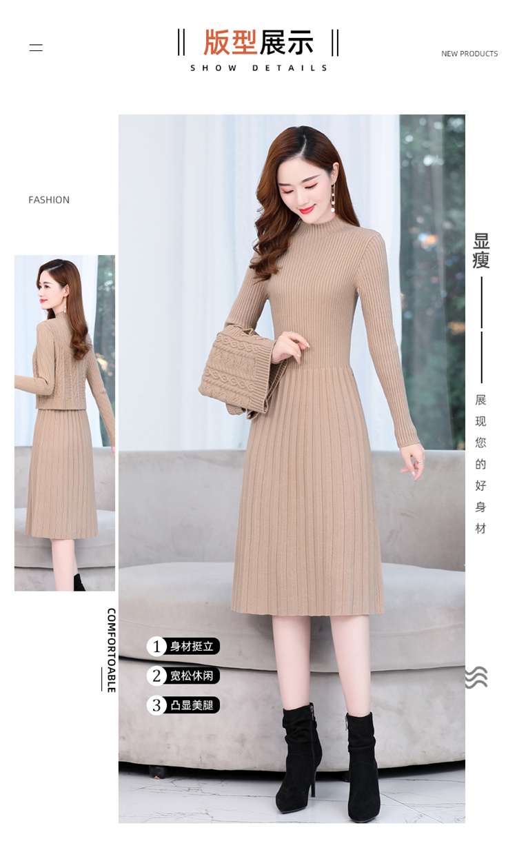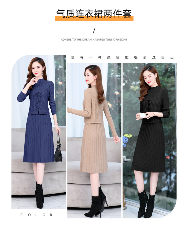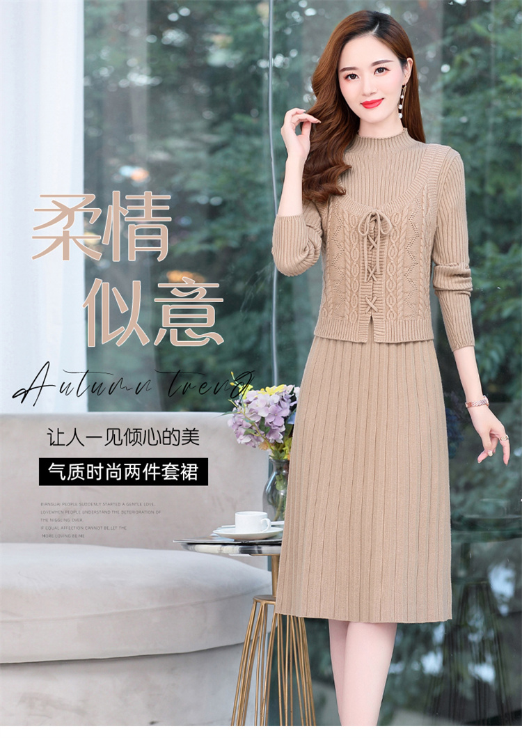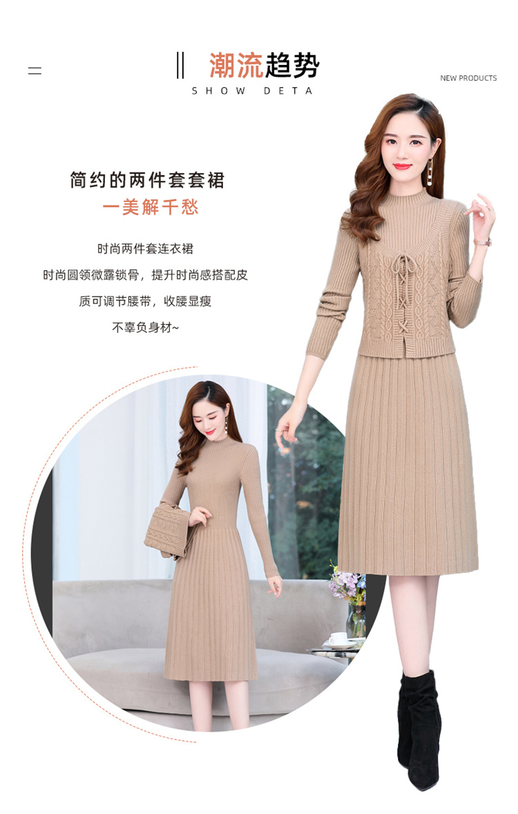时尚修身,显瘦两件套2021新款秋冬毛衫连衣裙HR-YBER2217