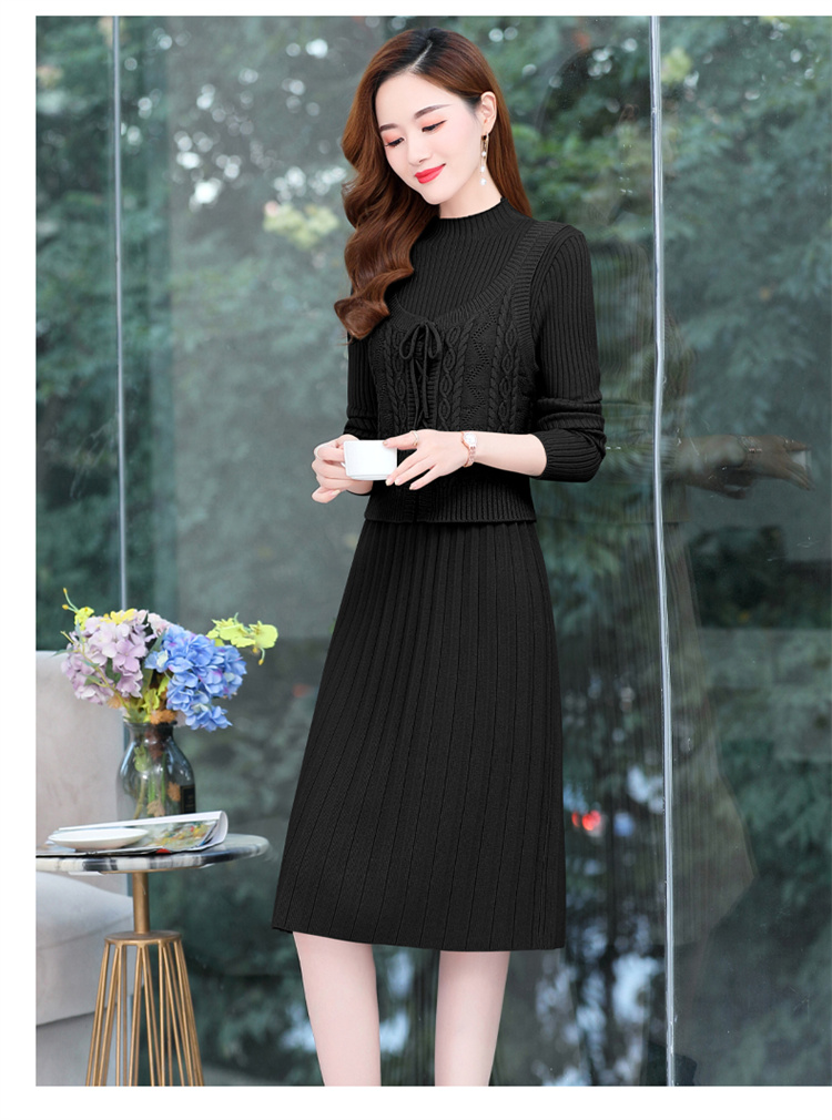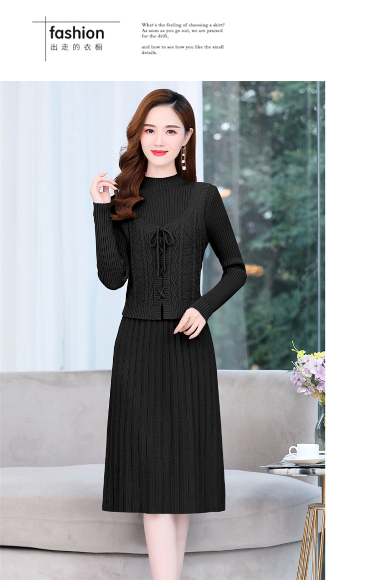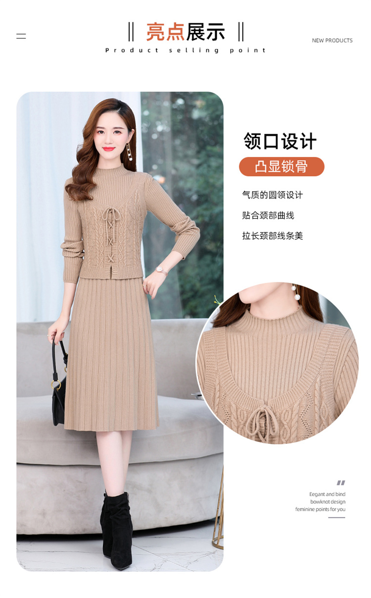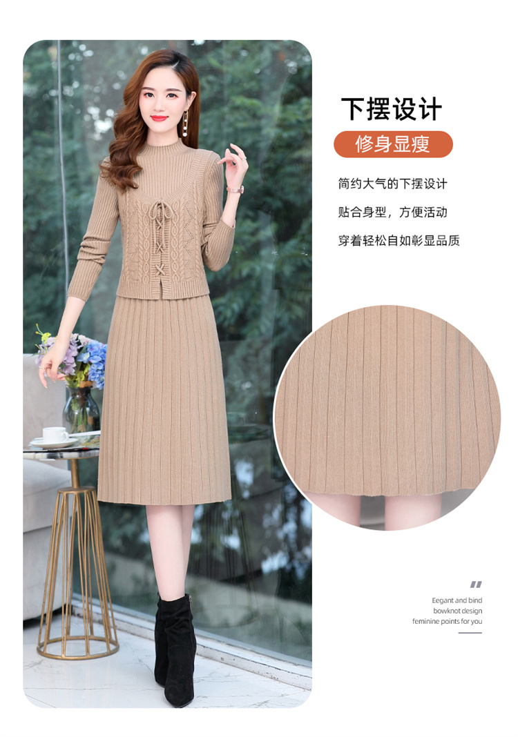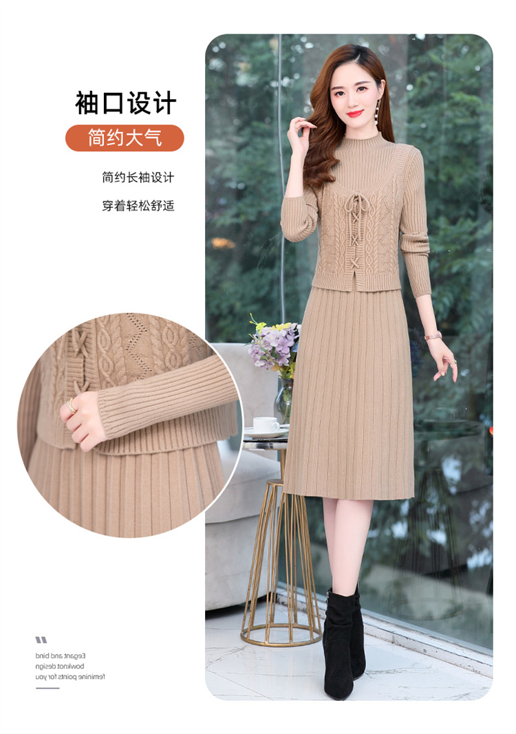 时尚修身,显瘦两件套2021新款秋冬毛衫连衣裙HR-YBER2217