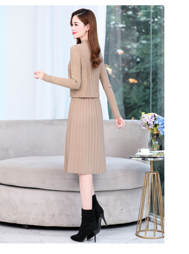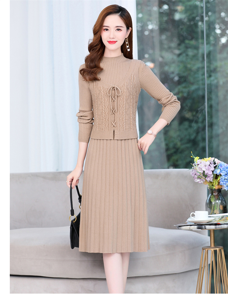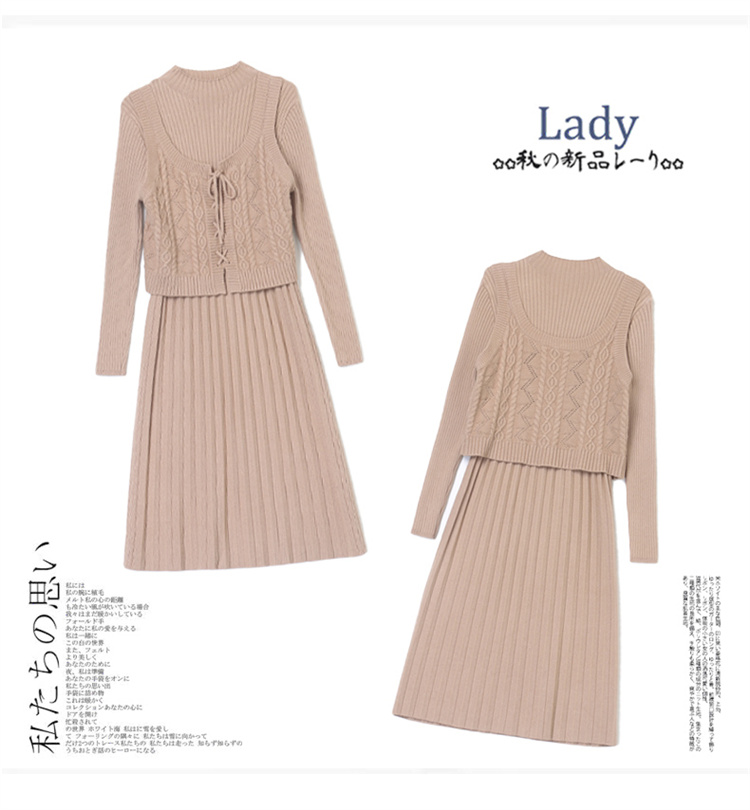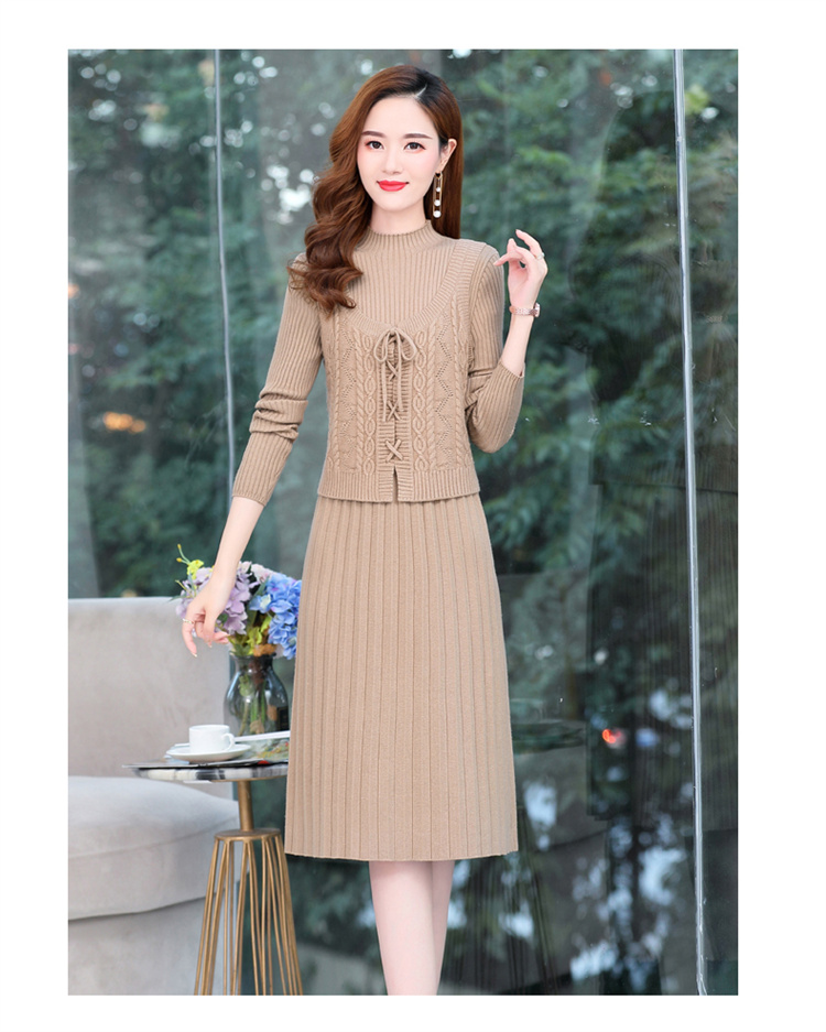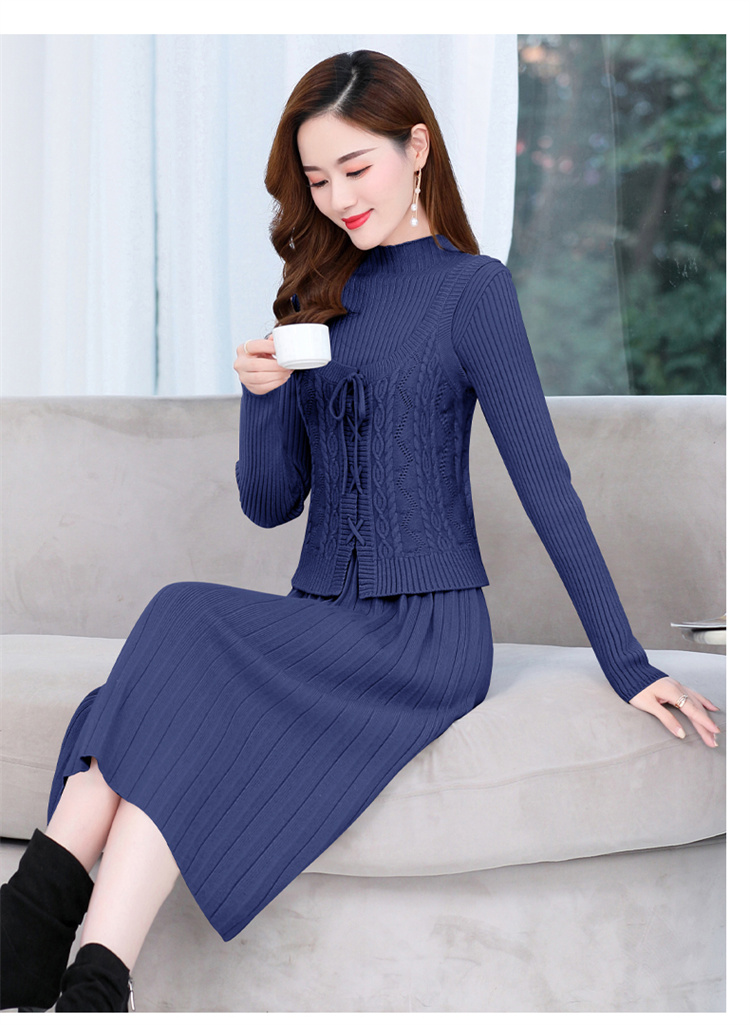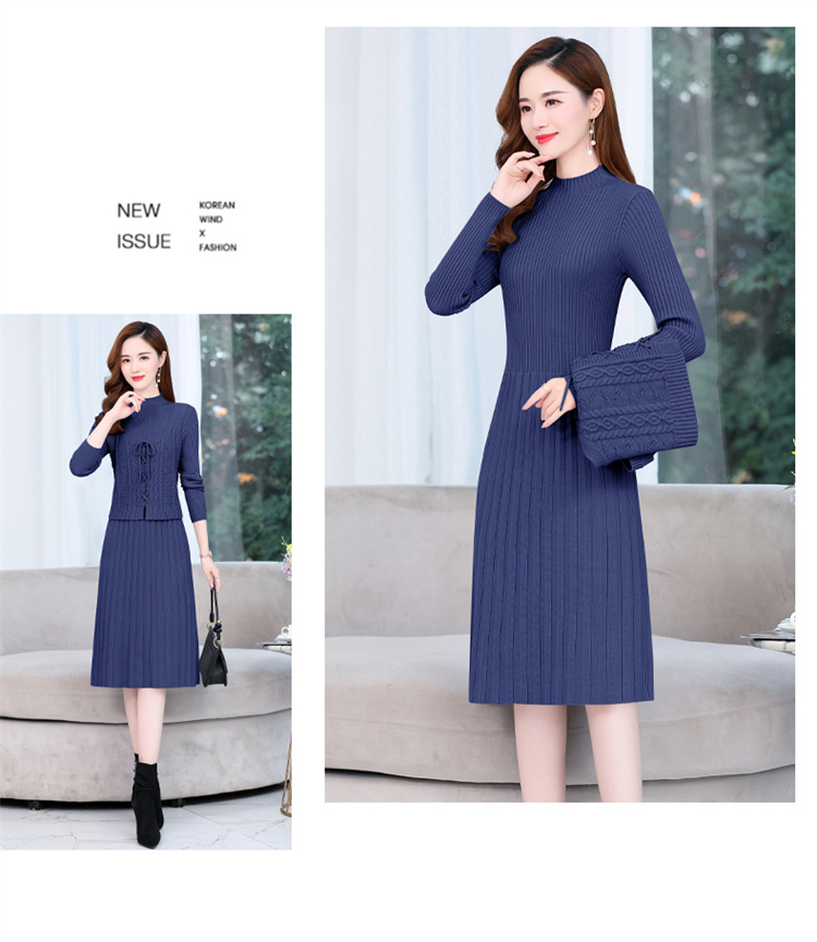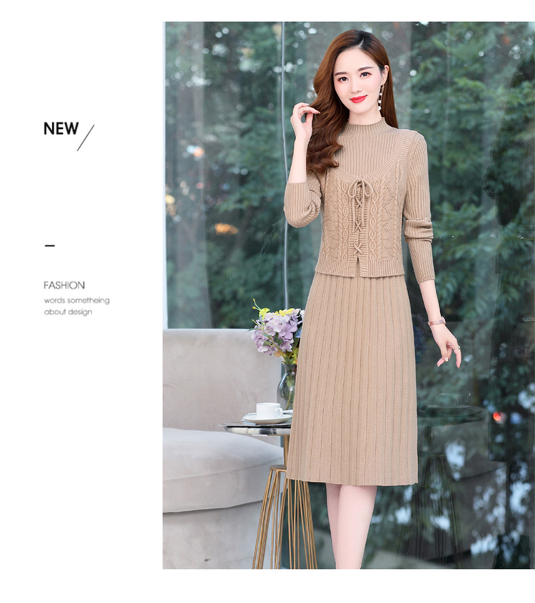 时尚修身,显瘦两件套2021新款秋冬毛衫连衣裙HR-YBER2217