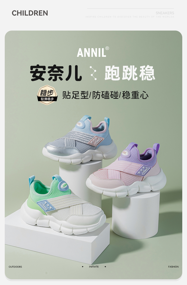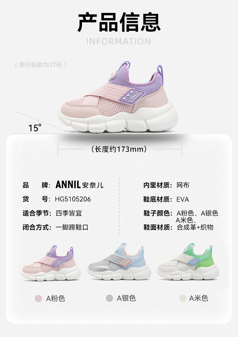 ANNIL/安奈儿儿童运动鞋2025春秋女童透气老爹鞋一脚蹬软底男童跑步鞋子HG5105206