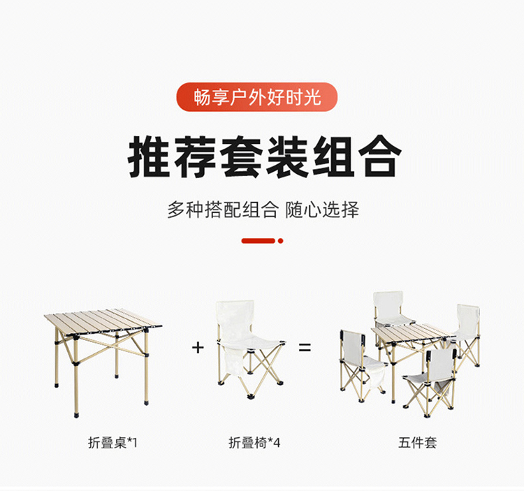 飞图乐米白折叠桌椅方桌五件套ZDZY0100