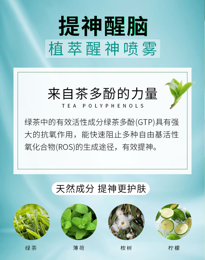 【拒绝瞌睡效率加倍】绿茶提神喷雾绿茶多酚成分提神又护肤清爽醒脑补水润肤清爽绿茶冰露喷雾醒神棒滚珠醒肤露60ml/瓶