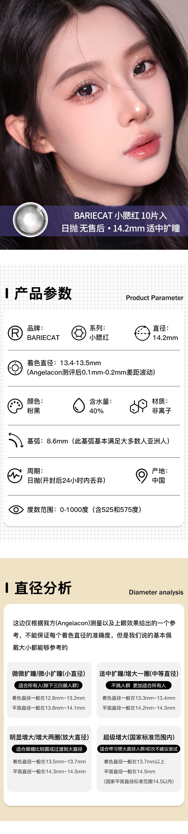 BARIECAT / 小腮红 / 10片入 / 美瞳日抛 / 14.2mm / 无售后 / 适中扩瞳渐变自然融瞳款