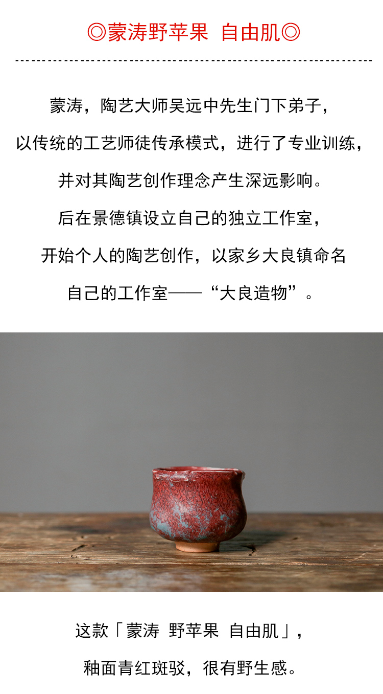 茶香记 蒙涛 野苹果 自由肌 铜红釉 手工捏制 斑驳原始 主人杯 茶杯
