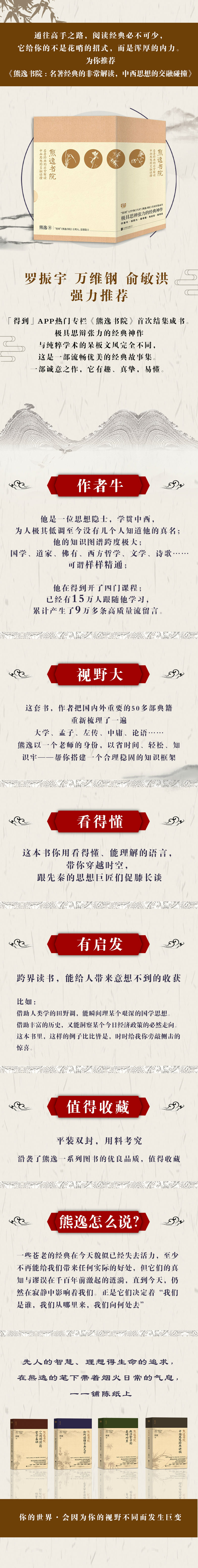 ◎《熊逸书院:中国经典思想讲稿》是一部诚意之作,它权威、有趣、真挚,易懂。