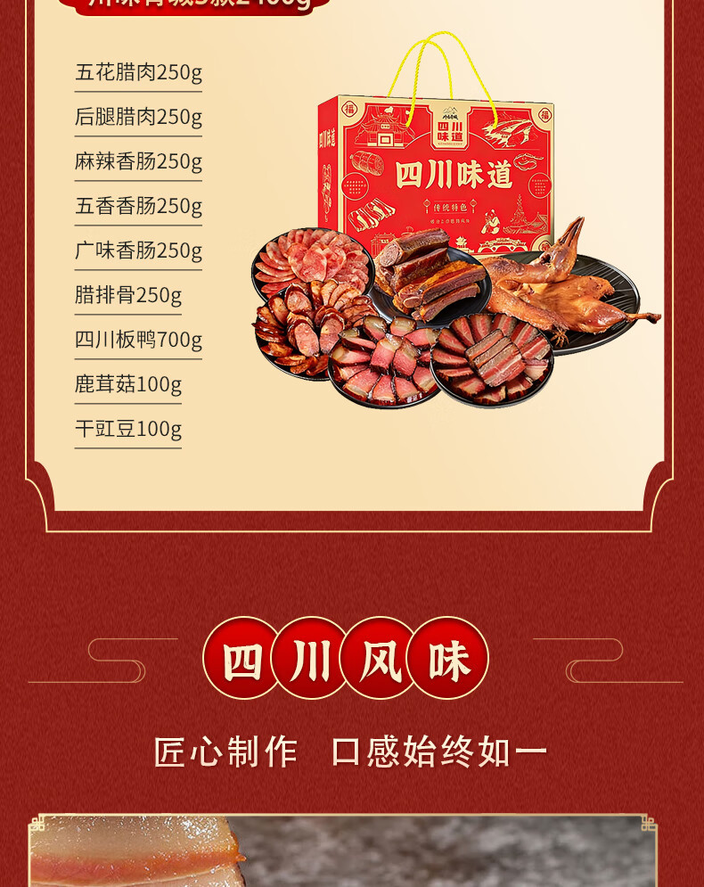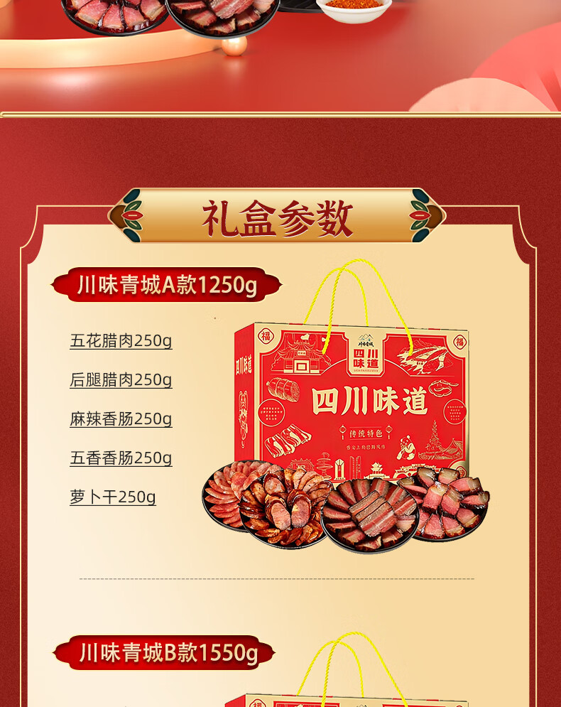 【麻辣咸香❗️精美礼盒装】四川特产腊味礼盒农家特色烟熏腊肠腊肉麻辣香肠年货节日送礼。jc